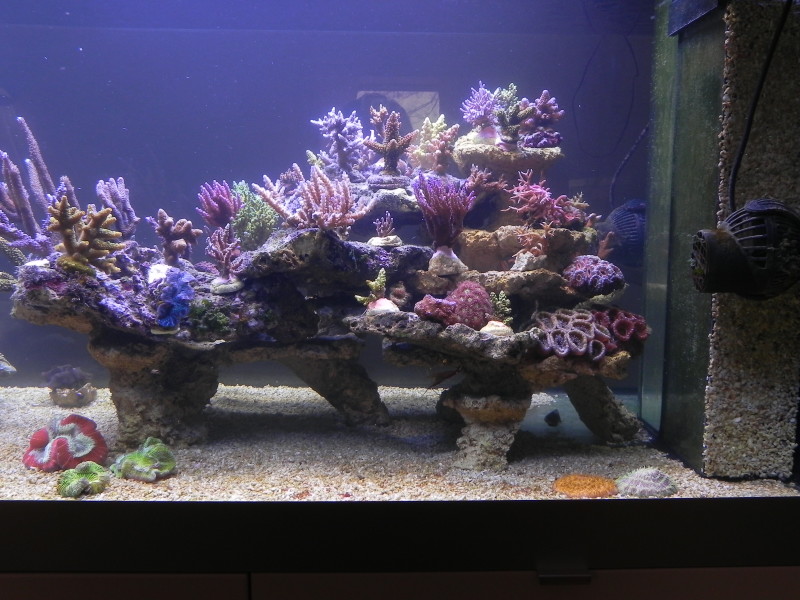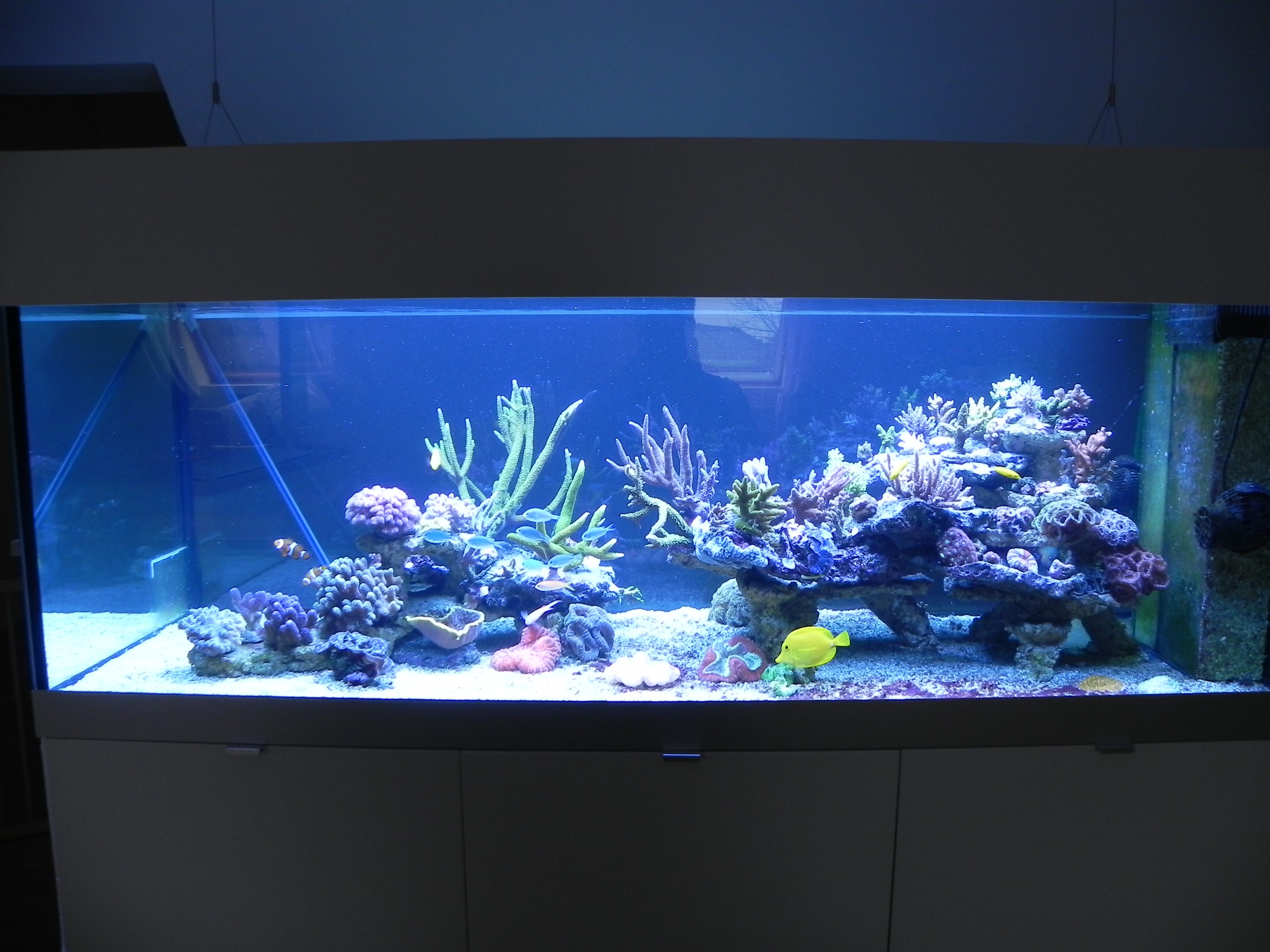 Der folgende Foto-Slider zeigt die Entwicklung des am 18.12.2012 gestarteten Riffbeckens von Dennis Wendt, das von Beginn an mit dem SANGOKAI BASIS-System und mit sango nutri-NP complete betrieben wird. Die Fotos zeigen das gerade gestartete Riffbecken (Gesamtansicht 1), den initialen Korallenbesatz am dritten Tag (Ansicht Plateau), das Becken nach 5 Tagen (Gesamtansicht 2), nach ca. 14 Tagen (rechte und linke Beckenansicht, den Zustand nach zwei Monaten (Gesamtansicht 3), drei Monaten (Gesamtansicht 4) und vier Monaten (Gesamtansicht 5 und Durchsicht durch den Raumteiler).