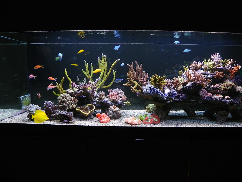 Wer die Kosten für gute lebende Steine und für entsprechend sauberes und nährstoffarmes künstliches Dekorationsmaterial nicht scheut (und hier kann man nur raten, nicht am falschen Ende zu sparen), der schliesst Probleme mit unkontrollierbaren Nährstoffeinträgen über die Dekoration aus und macht sich den aquaristischen Alltag leicht. Solche Riffaquarien können auch entsprechend schnell mit Korallen besetzt werden, was in Anlehnung an das ökologische Prinzip der Raum- und Nährstoffkonkurrenz eine sinnvolle Vorgehensweise darstellt. Es ist jedoch im gegebenen Einzelfall sehr unterschiedlich, wie sich der Ausgangsnährstoffgehalt darstellt und v.a., wie er sich im Laufe der ersten Wochen nach der Beckengestaltung verändert. Werden tatsächlich nur künstliche Materialien ohne lebende Steine verwendet, ist der Gehalt an Makronährstoffen meistens nicht messbar, es sei denn, man verwendet mit etwas Nitrat (bis zu 10 mg/L) und Phosphat (bis zu max. ca. 0,1 mg/L) belastetes Leitungswasser (was tatsächlich sehr günstig und sinnvoll ist, so lange nicht Unmengen an Nährstoffen und/oder eine hohe Silikatbelastung (> 0,25-0,5 mg/L) eine Wasseraufbereitung notwendig macht). Eine ausgewogene Kombination aus lebenden Steinen und künstlichen Materialien schafft eine günstigere Ausgangsposition durch die Freisetzung von organischen Nährstoffen z.B. aus abgestorbenen Schwämmen und anderer Mikrofauna- und flora.