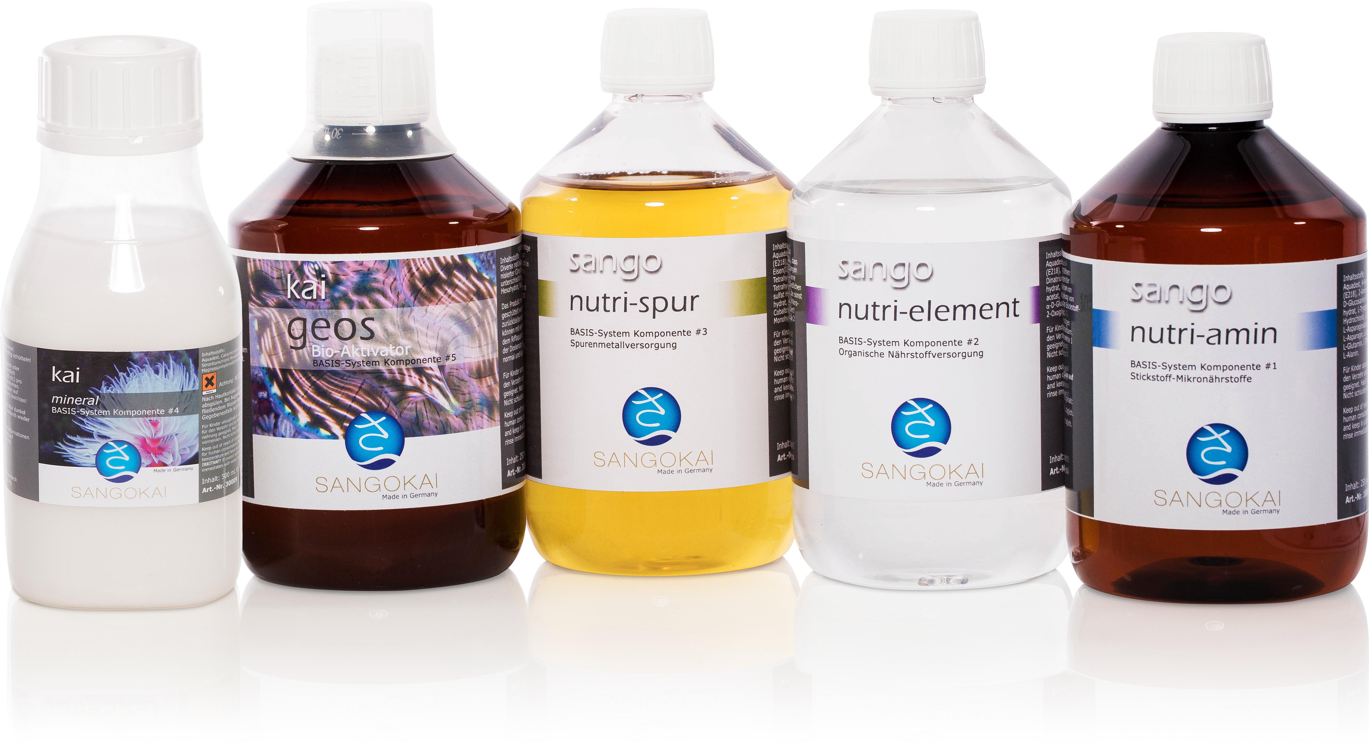 Das SANGOKAI BASIS-System bietet Deinem Riffaquarium eine umfangreiche Mikronährstoffversorgung, die zu einer deutlichen Leistungssteigerung des gesamten Aquariensystems führt.