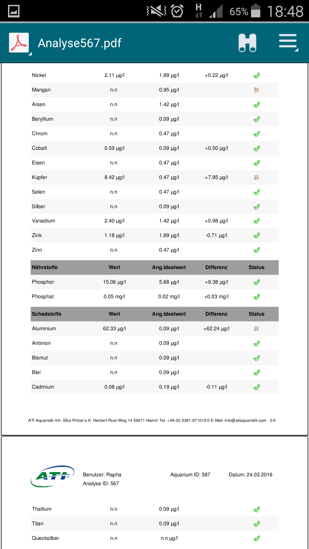 hier noch das Ergebnis meiner Analyse: Und meine letzten Wassertests: