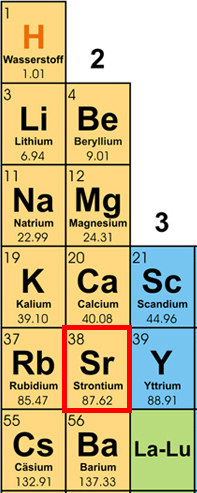 Hallo Jörg, fangen wir doch mal mit einem Fachthema an. Ich möchte ganz gerne das Thema rund um Strontium in Zusammenhang mit den Sangokai Produkten diskutieren. Das Erdalkalielement Strontium ist das zweifach positiv geladene Ion (Sr2+) und chemisch gesehen sehr eng verwandt mit Magnesium und Calcium.siehe Bild. Im Meerwasser ist das Strontium mit 8mg/l vorhanden (Vergleich: Calcium 420 mg/l bei 35‰)
