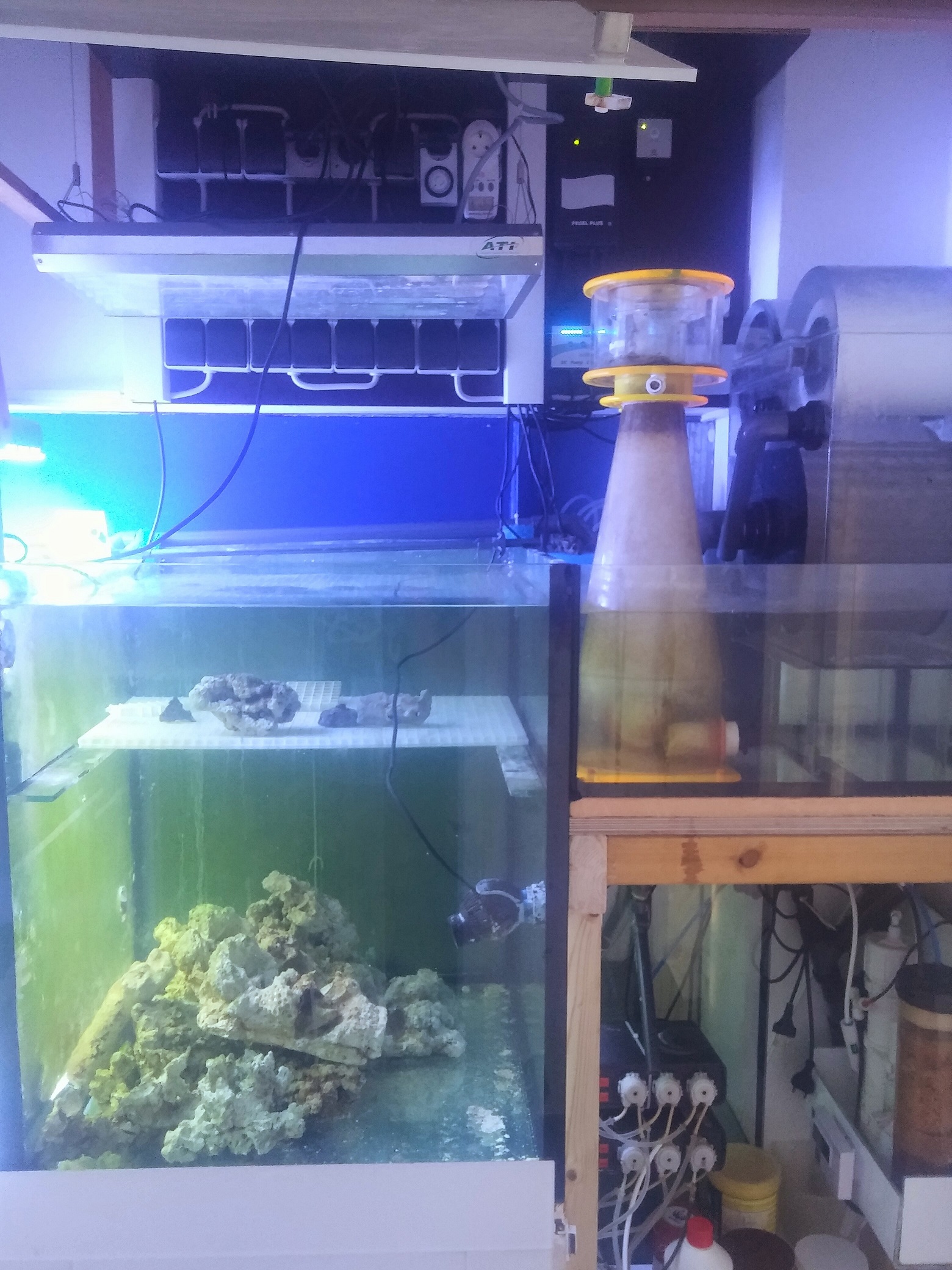 - Hauptbecken mit ATI hybrid 8x80 plus 4x75 led, Ableger derzeit noch 6x24w Sunpower, aber noch aus