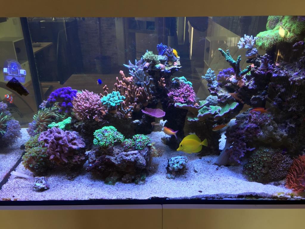 Momentan bin ich noch relativ ruhig, da auch die neu eingesetzten Acros von Joe noch Polypen zeigen. Zwar nur teilweise voll expandiert aber allgemein sehen sie gut aus. Meine A. enzmann, welche an ihrem alten Standort sehr eingedunkelt war, gewinnt am neuen Platz auch wieder mehr an Farbe und bildet Wachstumsspitzen.