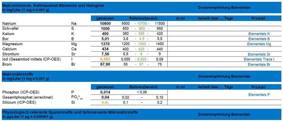 Habe nach Tag 15 meine erste ICP Analyse bei FaunaMarin machen lassen.