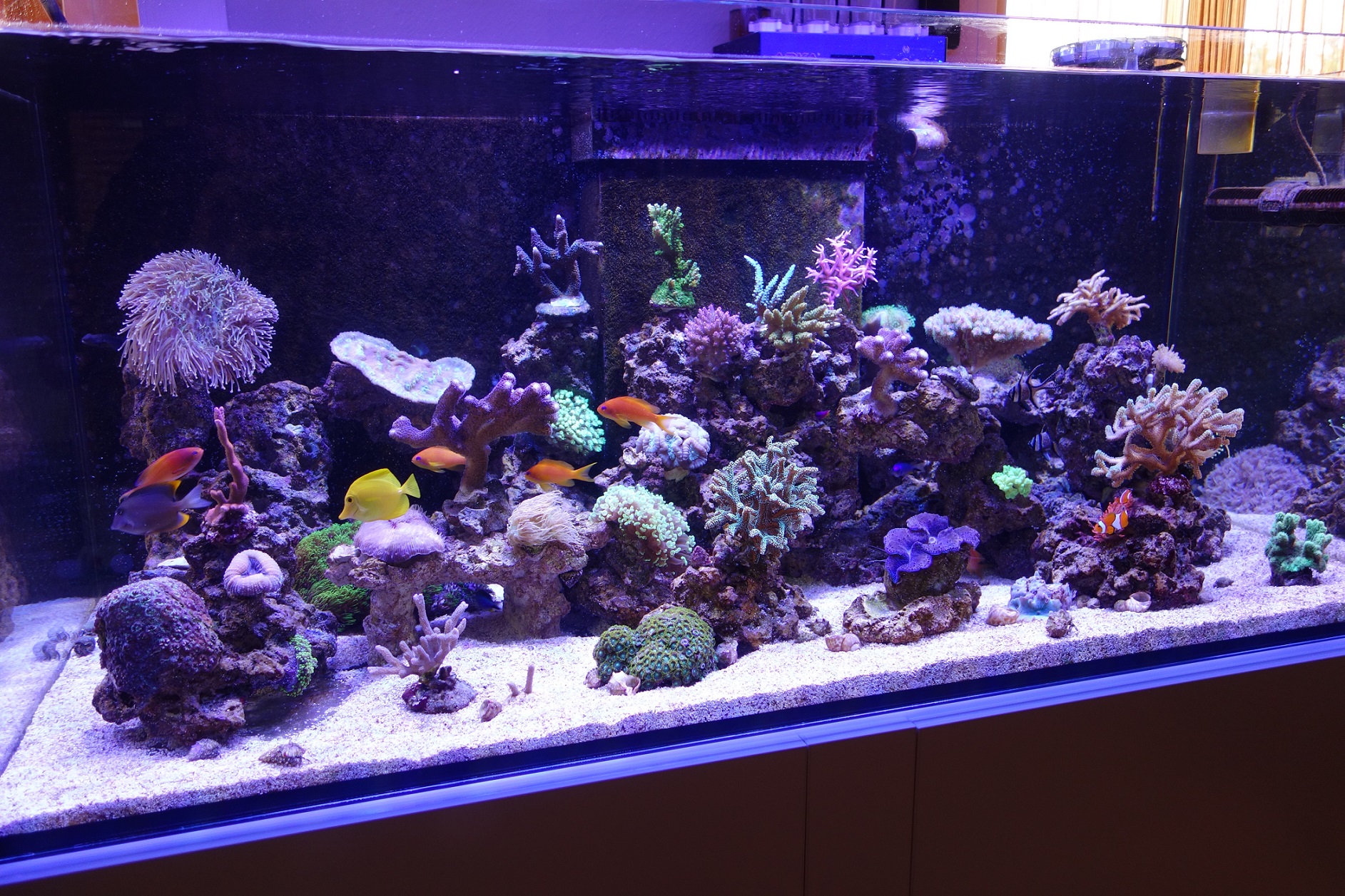 Meine Algen auf der Rückwand werden immer mehr (sind braun und nicht grün wie auf den Fotos) bzw. kommen jetzt auch violette Algen auf dem Gestein zum Vorschein.