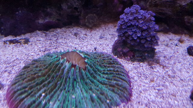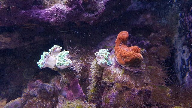 Ich muss wegen des Besatzes dazu sagen, das die Korallen aufgrund von einer Dinoplage mit div. Begleiterscheinungen vor ein paar Monaten dezimiert wurden (alle sps) und das derzeitige layout nur vorübergehend ist. Aufgrund von Algen und Glasrosen ist das obere Riff kaum bewohnbar. ich wollte vor allem wieder Verbraucher rein bringen.