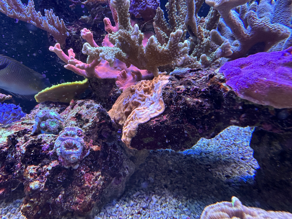 Heute musste ich dabei feststellen, dass sich dabei das Gewebe meiner Leptoseris mit verabschiedet, wie auf dem Bild zu sehen.