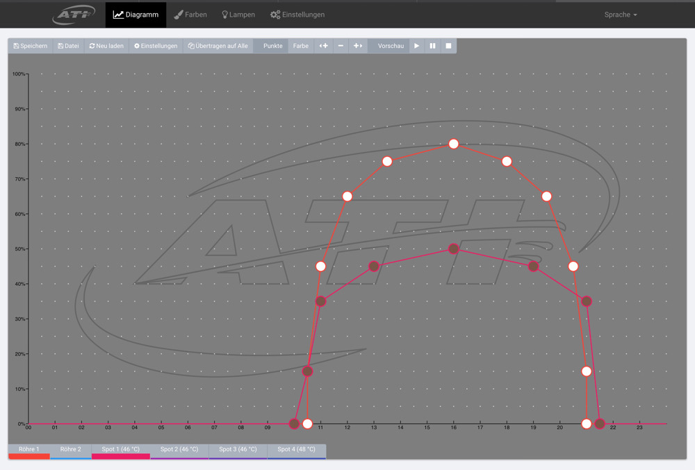 Ein paar Bilder meines Beckens anbei ebenso die Lichteinstellung meiner ATI hybrid mit 6x80W + 4x LED