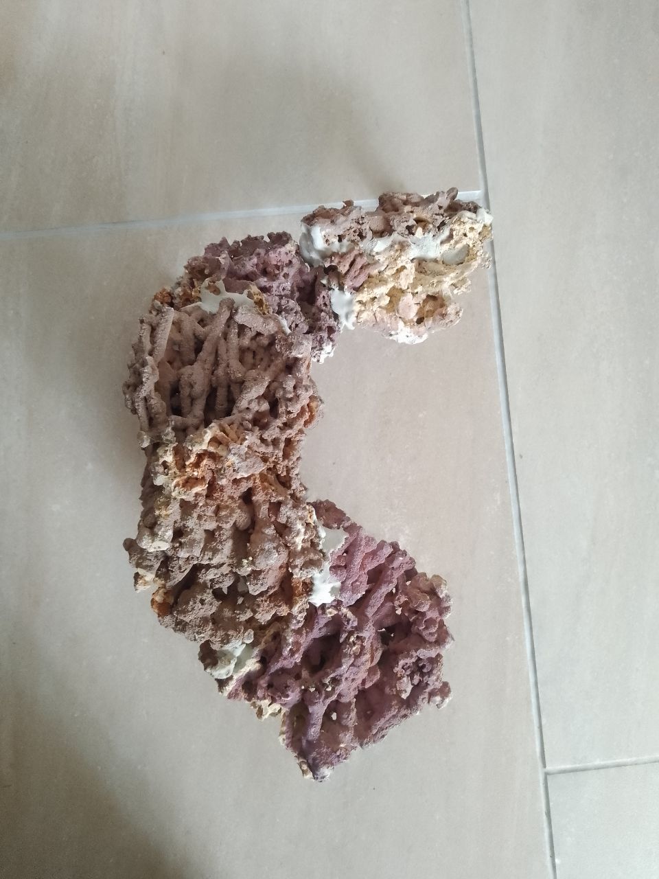 Mein zementierter Bogen ist beim aufkleben der Ableger auseinander gebrochen... War wohl zu filigran oder ich habe nicht genug Riffzement benutzt. Und weil dann nicht genug Zeit und sowieso nicht genug Material da war, musste ich aus Resten und etwas Altgestein mir ein Provisorium bauen. Neue Steine müssen also her. Zumindest hat es mit dem Sand geklappt. Den habe ich über Nacht in 6% Wasserstoffperoxid einwirken lassen und am nächsten Tag seeeehr gründlich ausgespült. Da kam dann wieder ordentlich Schmodder raus, obwohl ich vorher nochmal ausgewaschen hatte. Der Sand ist aber wieder richtig heftig weiß, ich hoffe das es Anzeichen sind für die nicht mehr vorhanden Depots.