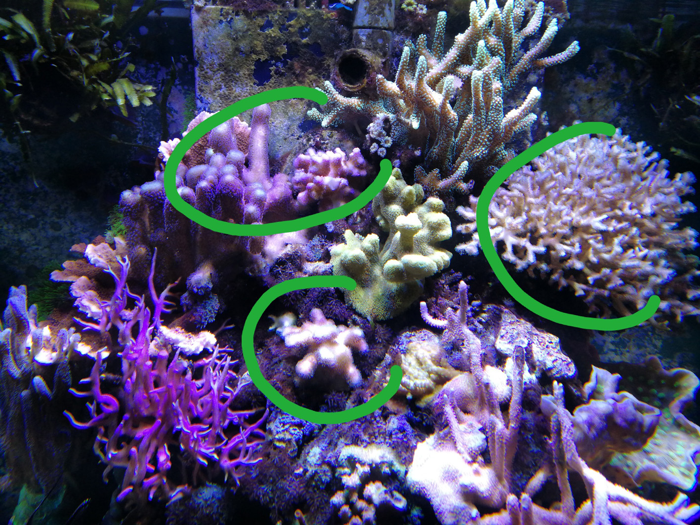 Für mich sehen die Korallen verbrannt aus. siehe Markierung im Bild. Auch habe die Korallen wie die Seriatopora ein unnatürliches Längenwachstum.