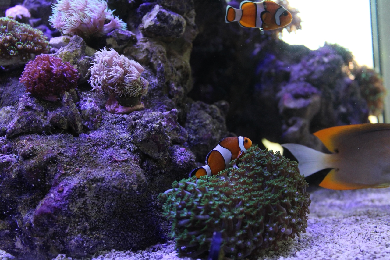 Die Clowns sind seit März bei mir und haben einen Beckenumzug Anfang Juni ohne Probleme mitgemacht. Der Reegnbogenlippfisch kam dann mitte Juni dazu. Alle anderen Fische sind Mitte/Ende Juli ins Becken gekommen.