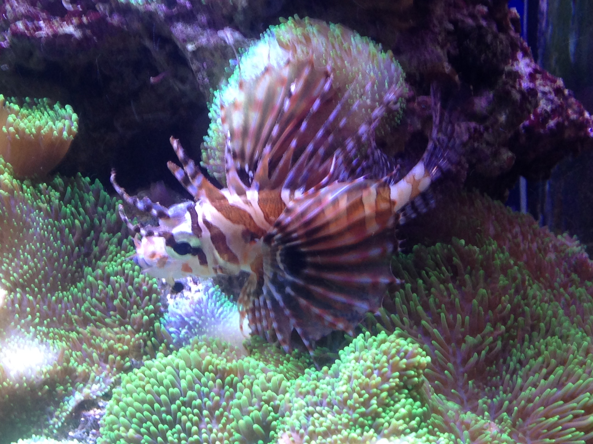 Hm, bei den seitlichen Flossen sind beim Pterois mombasae so lange Fühler dabei, das hat meiner nicht. Und bei den anderen FeuFi Arten passt die Zeichnung nicht mit dem von mir zusammen. Dann wird es wohl der zebra sein... Wenn er aufgefüttert ist, wird er vielleicht mehr Farbe bekommen, dann wird es leichter zu bestimmen sein.