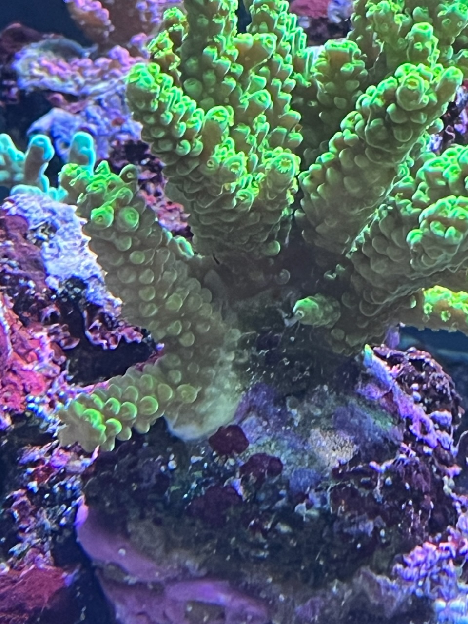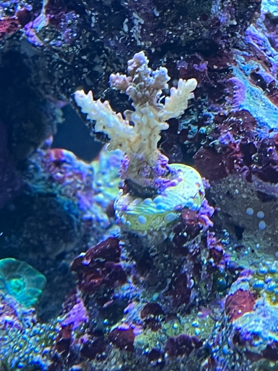 In meiner Not habe ich dann eine RT/STN X Kur von Fauna mit anschliessendem ReconX gemacht und seit dem schien das Problem unter Kontrolle zu sein. Gestern habe ich dann zum ersten mal gesehen, dass sich eine Basalscheibe von einer Milka (bisher super gewachsen) und von einer Acropora beginnen aufzulösen. Farben sind nicht da, aber darum geht es mir bisher auch gar nicht. Die LPS im Becken zeigen seit Beginn an nie Probleme.