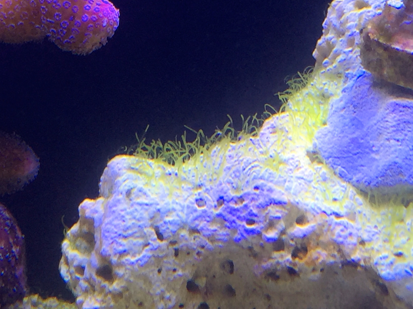 Die Algen könnten evtl. die hier sein https://www.meerwasser-lexikon.de/tiere ... s_Alge.htm,