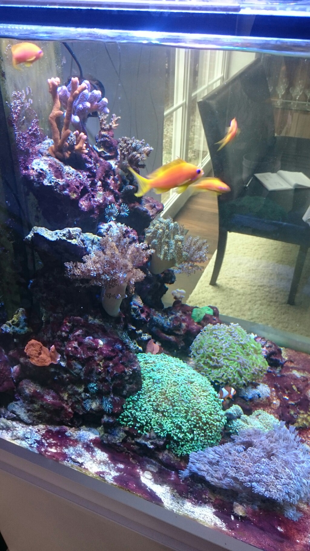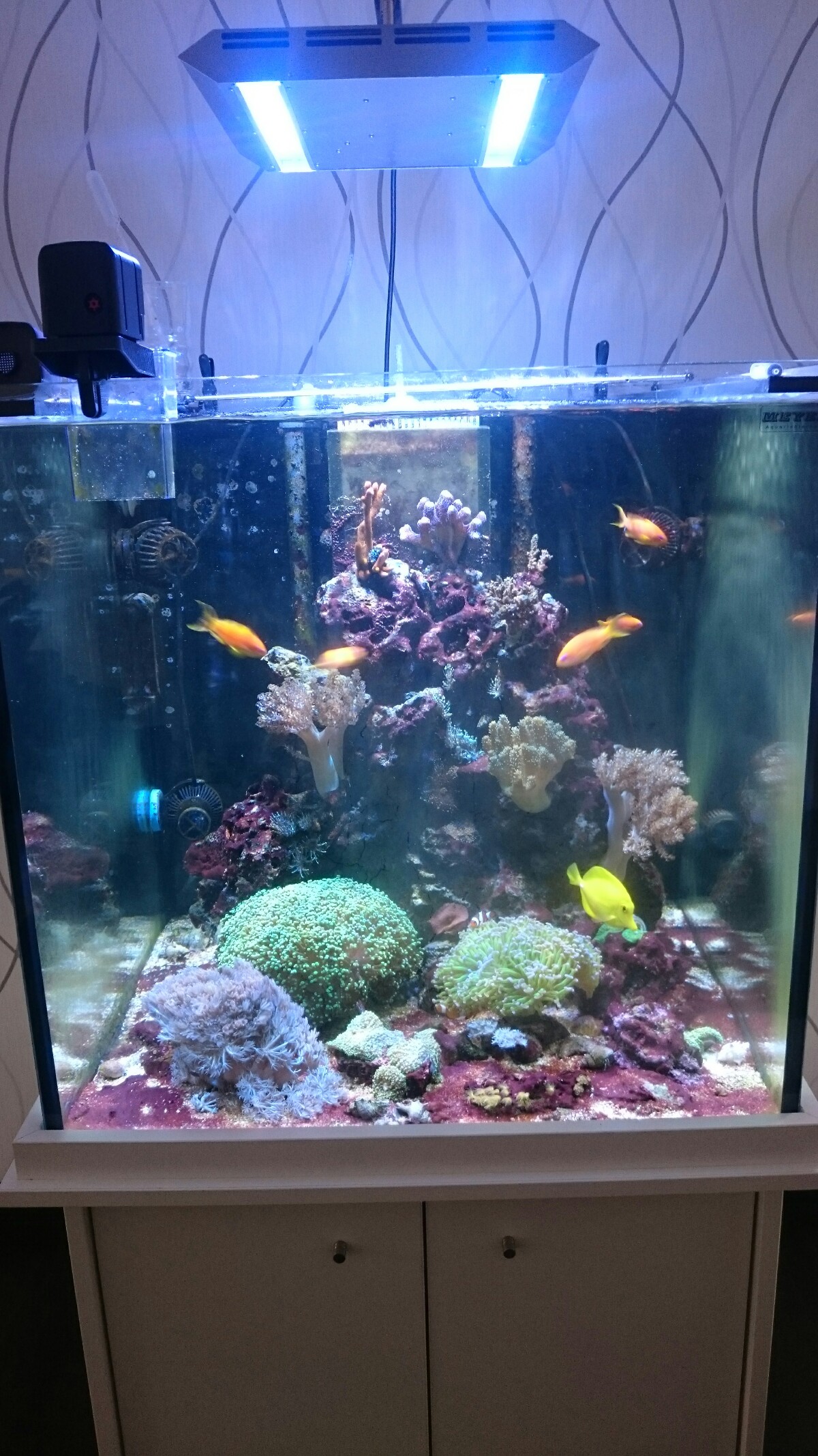 Habe bei der Beleuchtung lediglich den Roten Kanal von 0 auf 5 angehoben. Die Strömung hat sich nur verändert, weil ich die Pumpen zum reinigen draußen hatte. Dadurch minimale Veränderung. Mehr habe ich nicht gemacht.