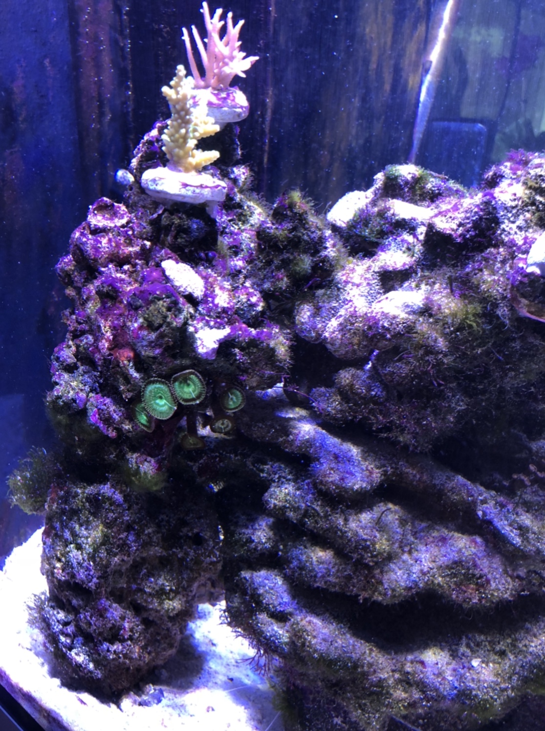 Du hast einen sehr großen Aufbau, das macht es nicht leicht dort Korallen unterzubringen. Welchen langfristigen Besatz hast du denn angedacht? Aktuell machst du eine klassische Einfahrphase durch.