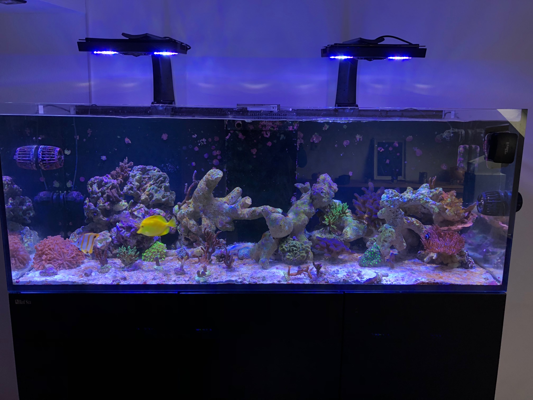 Ich finde, Du hast zu wenige Korallen im Becken. Die SPS scheinen auch keine Wachstumsspitzen zu haben, evtl. wegen der zu kurzen Beleuchtungsdauer. Hier wäre dann natürlich auch die Einstellung der Lampen wichtig.