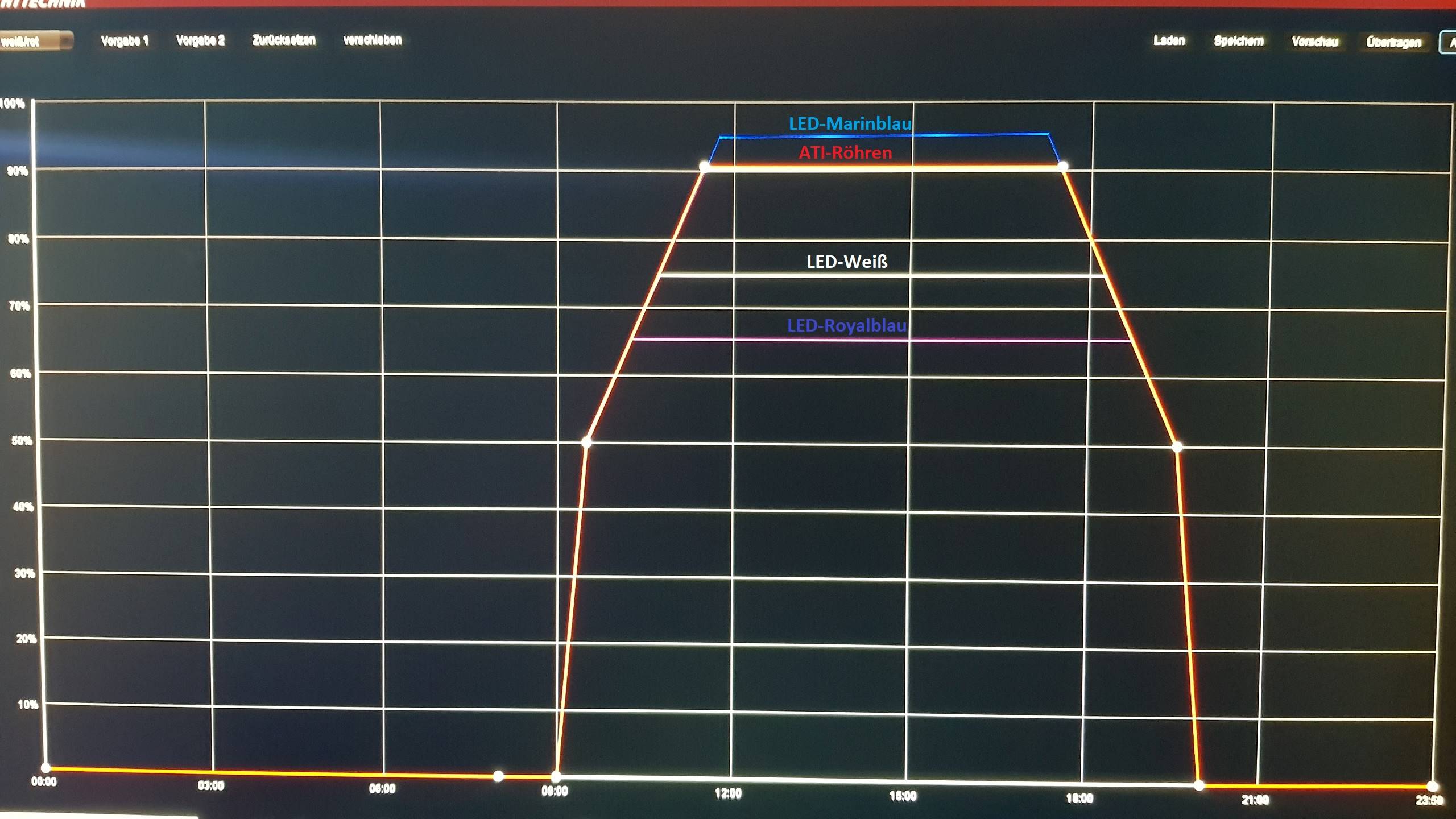 4x39Watt Röhren mit jeweils zwei Coral+ und Blue+ von ATI
