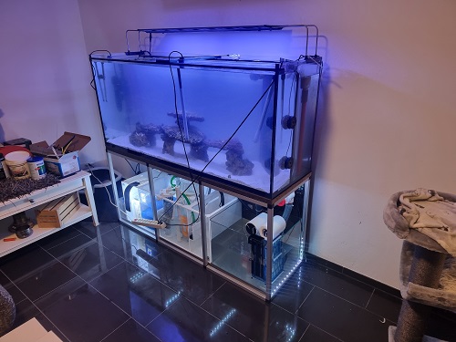 Die Rückförderungspumpe stieg leider aus. Die Fische bekamen zu wenig Sauerstoff, es wurde zuviel Futter gegeben, dies führte zu einem grossen Verlust der Fische und ein paar Korallen : (