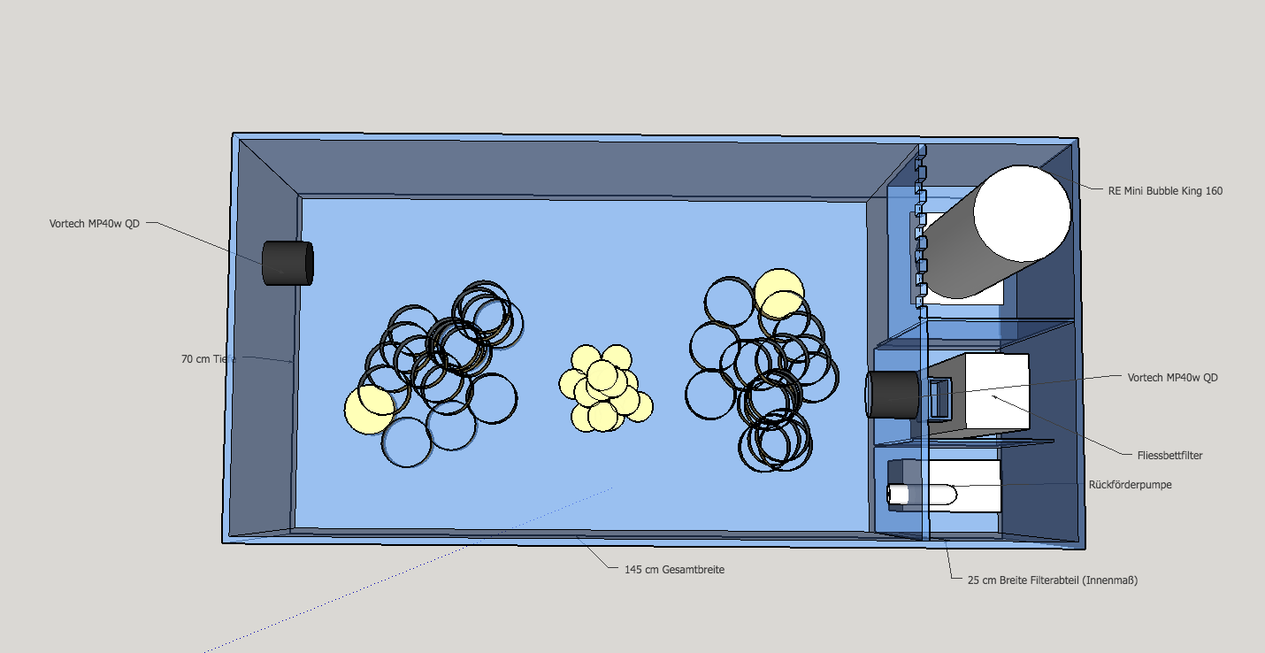 Anbei mal zwei Planungen mit der "Trockenkammer" für die Strömungspumpe im Filterabteil.
