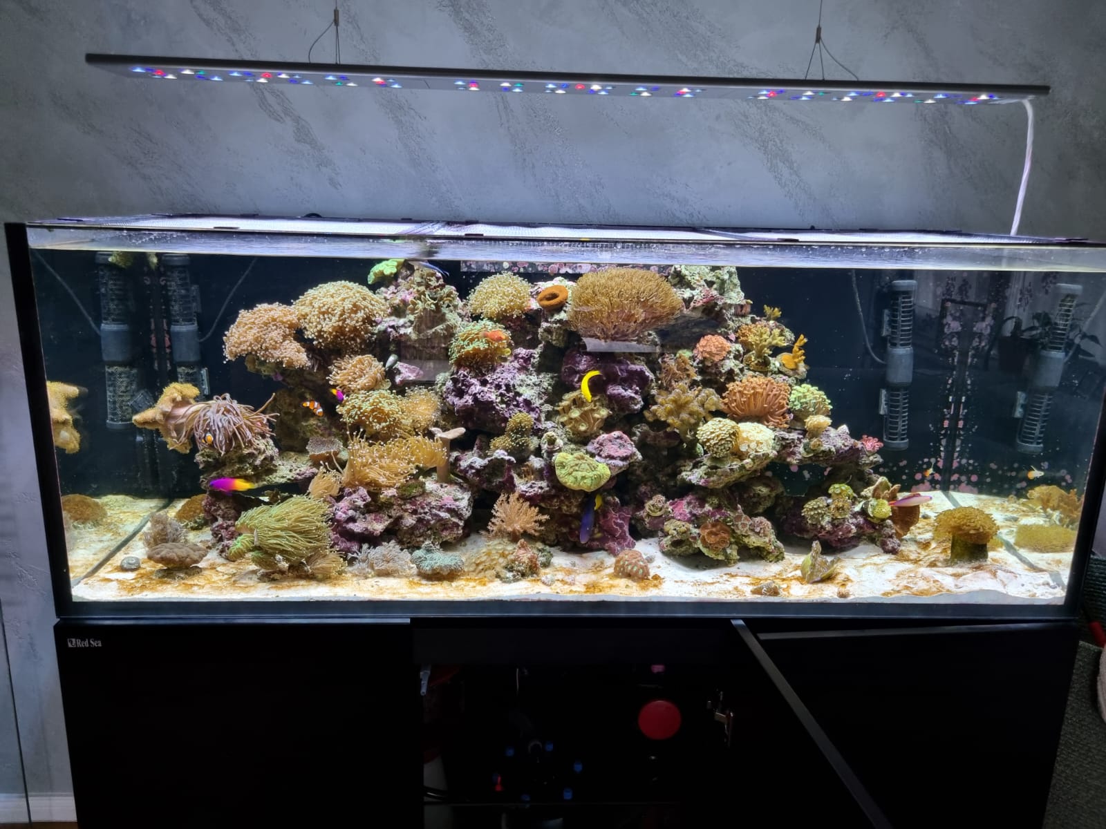 Ich würde mir an deiner Stelle überlegen das Salz zu wechseln. Das Red Sea Salz hat meines Wissens eine KH von 12, was weit jenseits dessen ist, was praxisüblich ist. Deine KH ist mit 8 ja voll OK. Das nur als Hinweis. Falls du mal einen größeren Wasserwechsel machen müsstest, würdest du dir die KH damit deutlich über 9 schießen, was dir die Korallen übel nehmen könnten.
