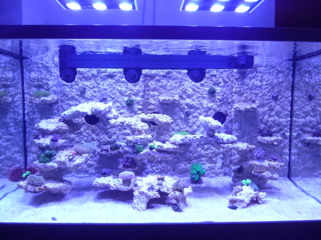 Das Wasser wird klarer und der Mief aus dem Technikschrank lässt nach, Nitrat und Phosphat jetzt beide nn und neben der Etsblierungsphase des Basis-Systems muss ich auch weiterhin complex und complete dosieren. Die schnellwüchsigen Korallen wachsen tatsächlich und alle bis eine Zoanthus sind bester Laune. Mimöschen Entacmea hat auch einen Platz gefunden und ich frage mich und Euch? Wann darf der erste Fisch einziehen. Soweit ich weiß, wenn sicher ist, die Korallen verbrauchen Nährstoffe und zeigen Wachstum - mir scheint das gegeben.
