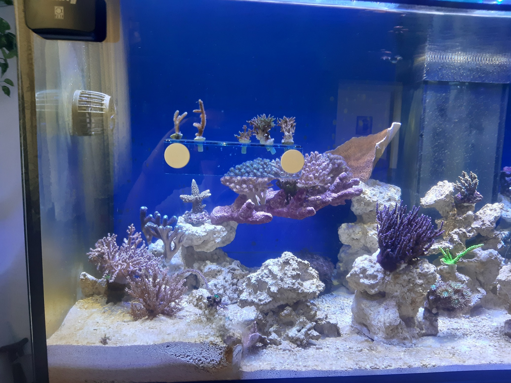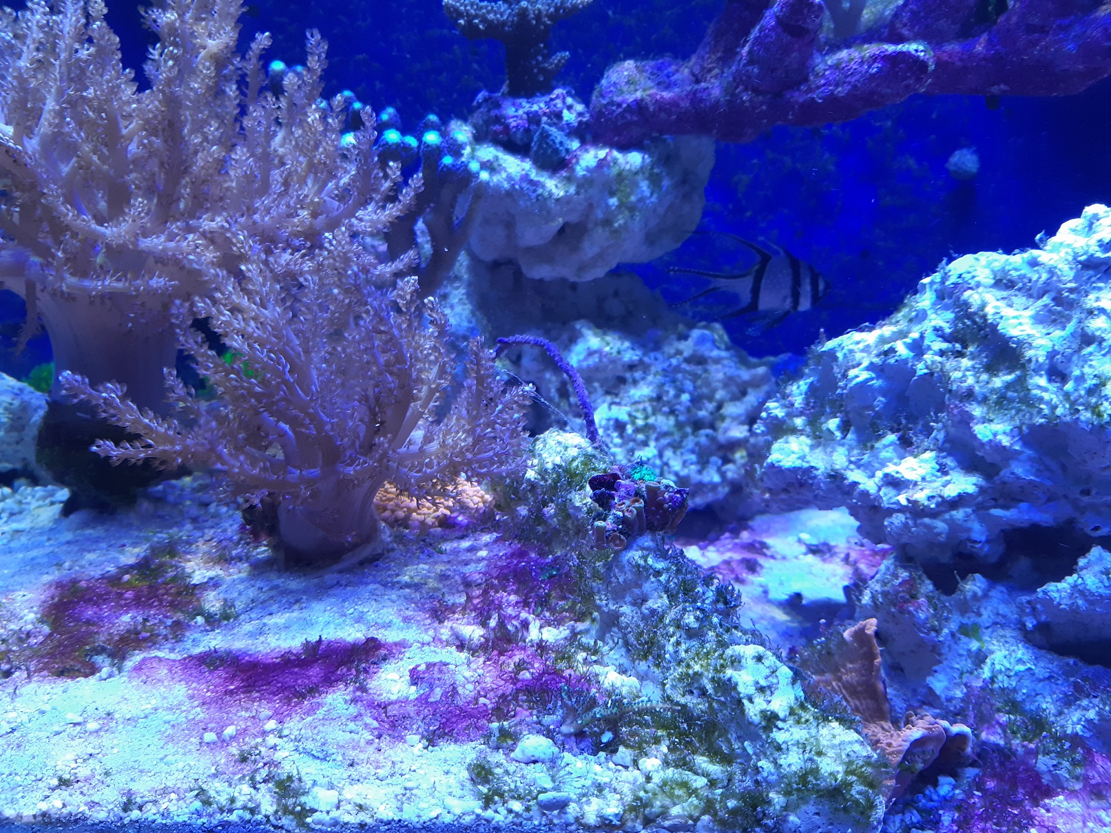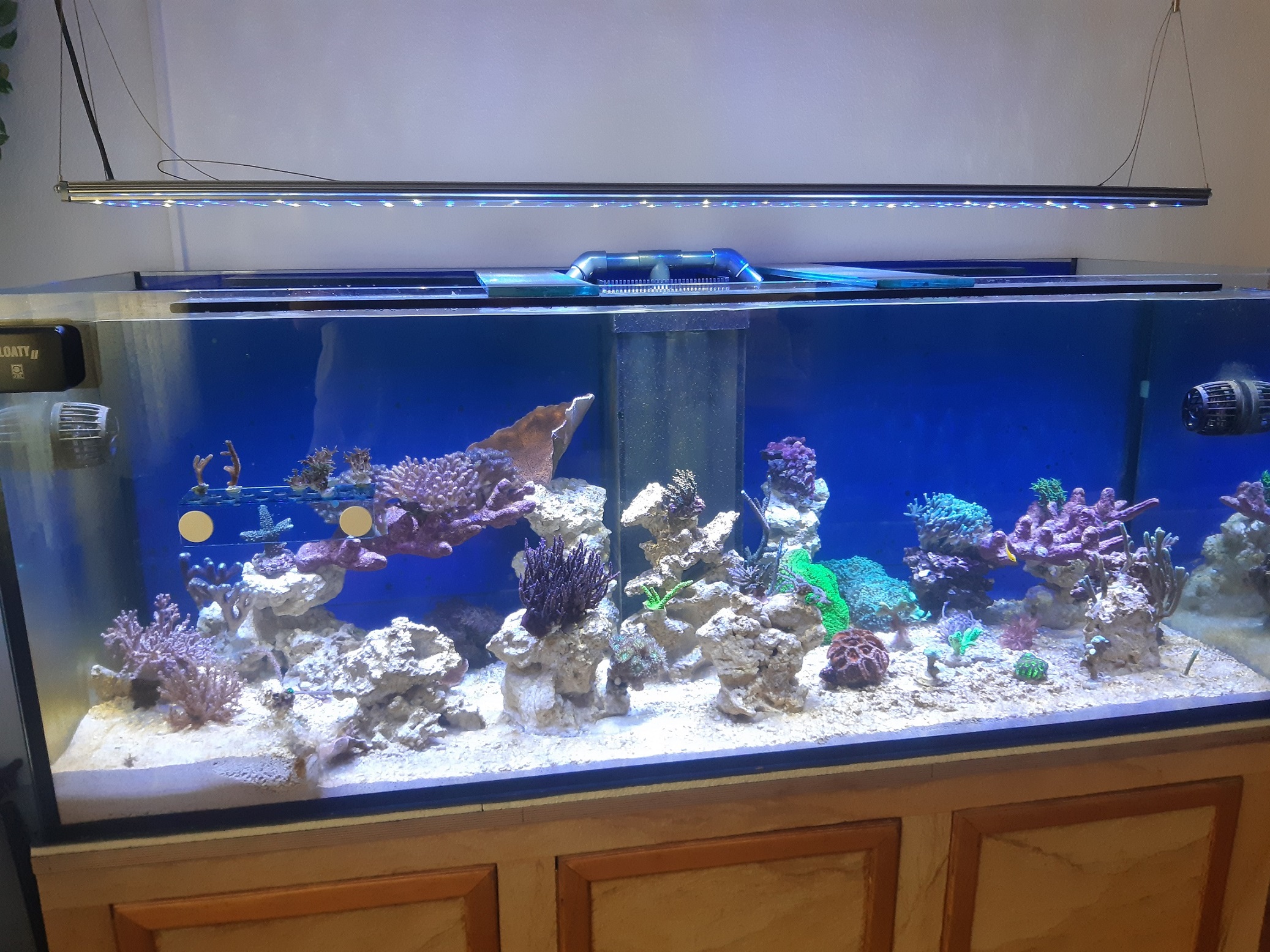 daneben gehangen ( mit der Einstellung vom alten Becken ). Jetzt ist das Licht angenehmer und den Korallen scheint es auch besser zu gefallen.