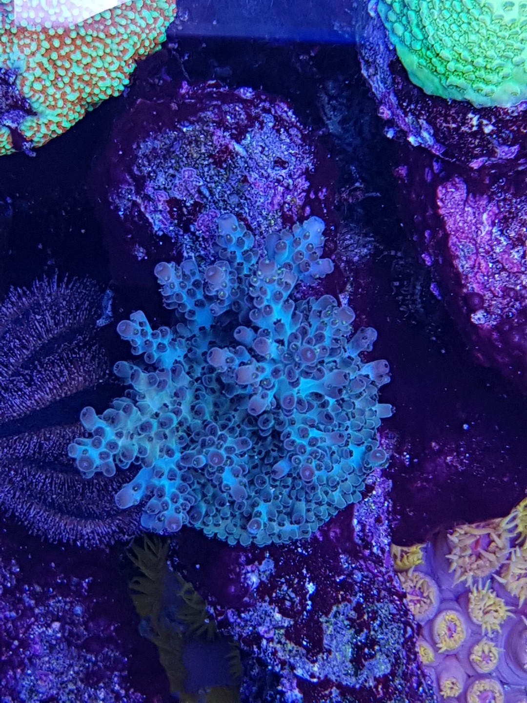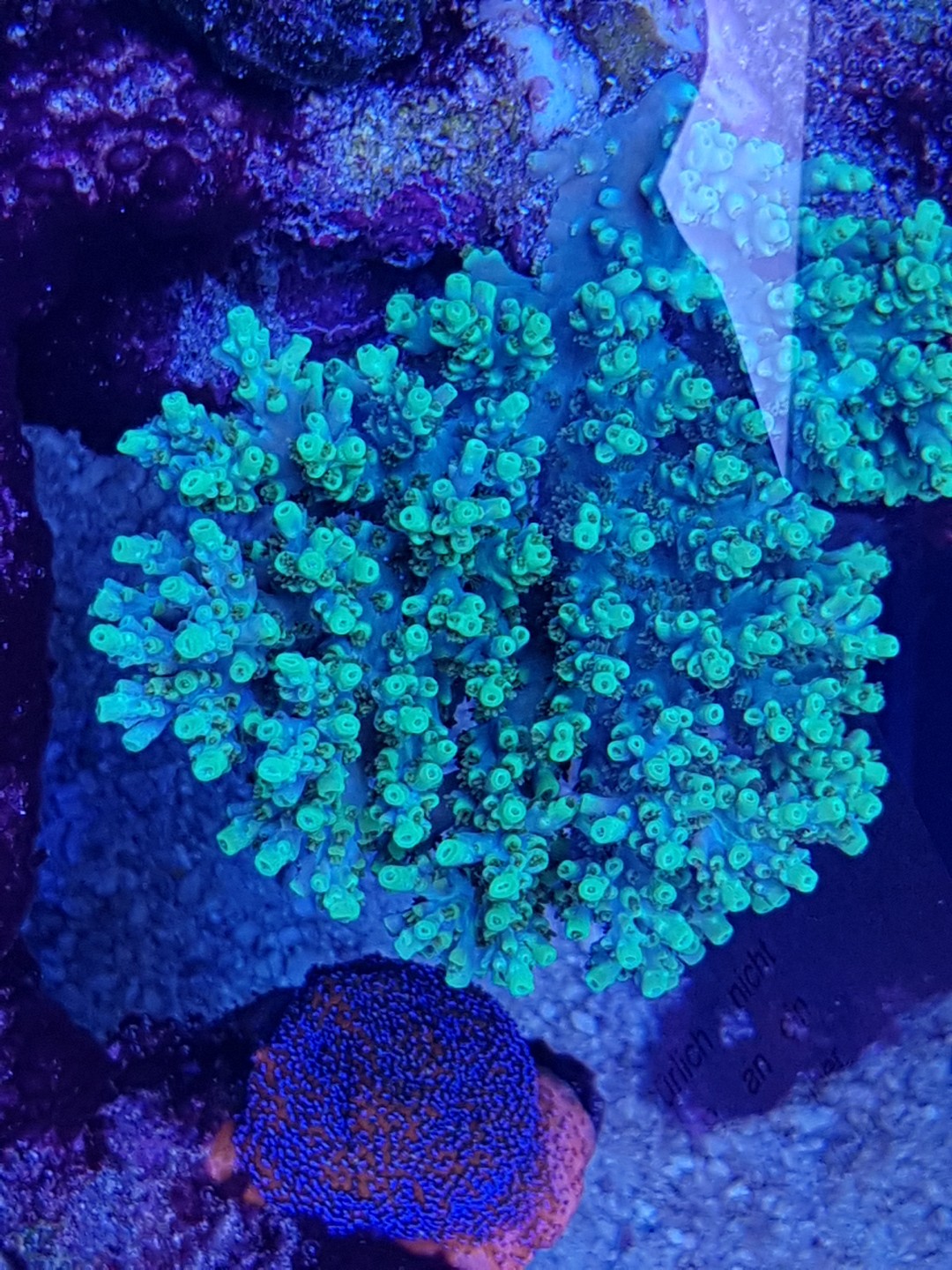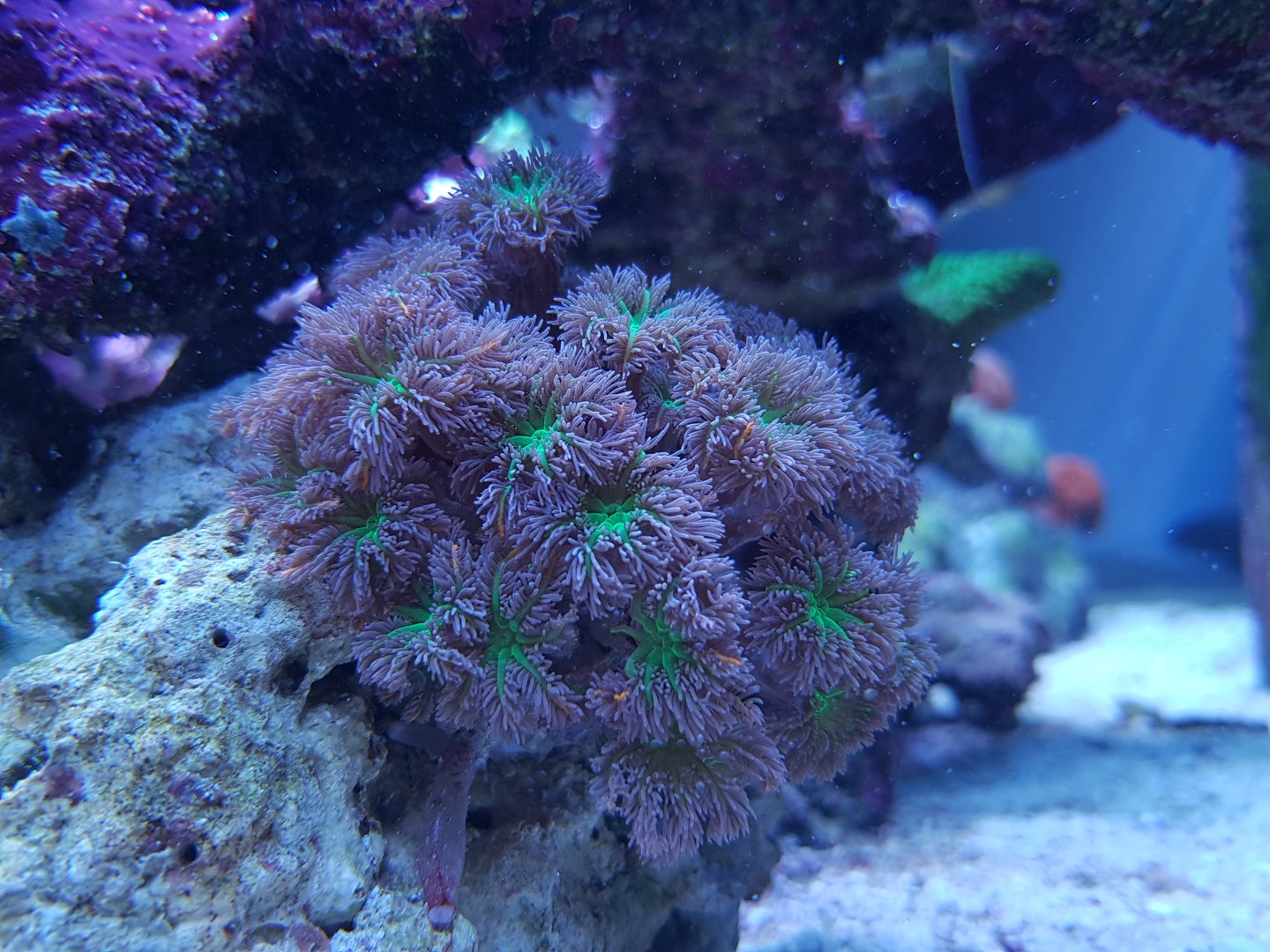 Trotz anhaltender Cyanos geht es den Korallen sehr gut. Polypenbild und Wachstum sind tadellos.