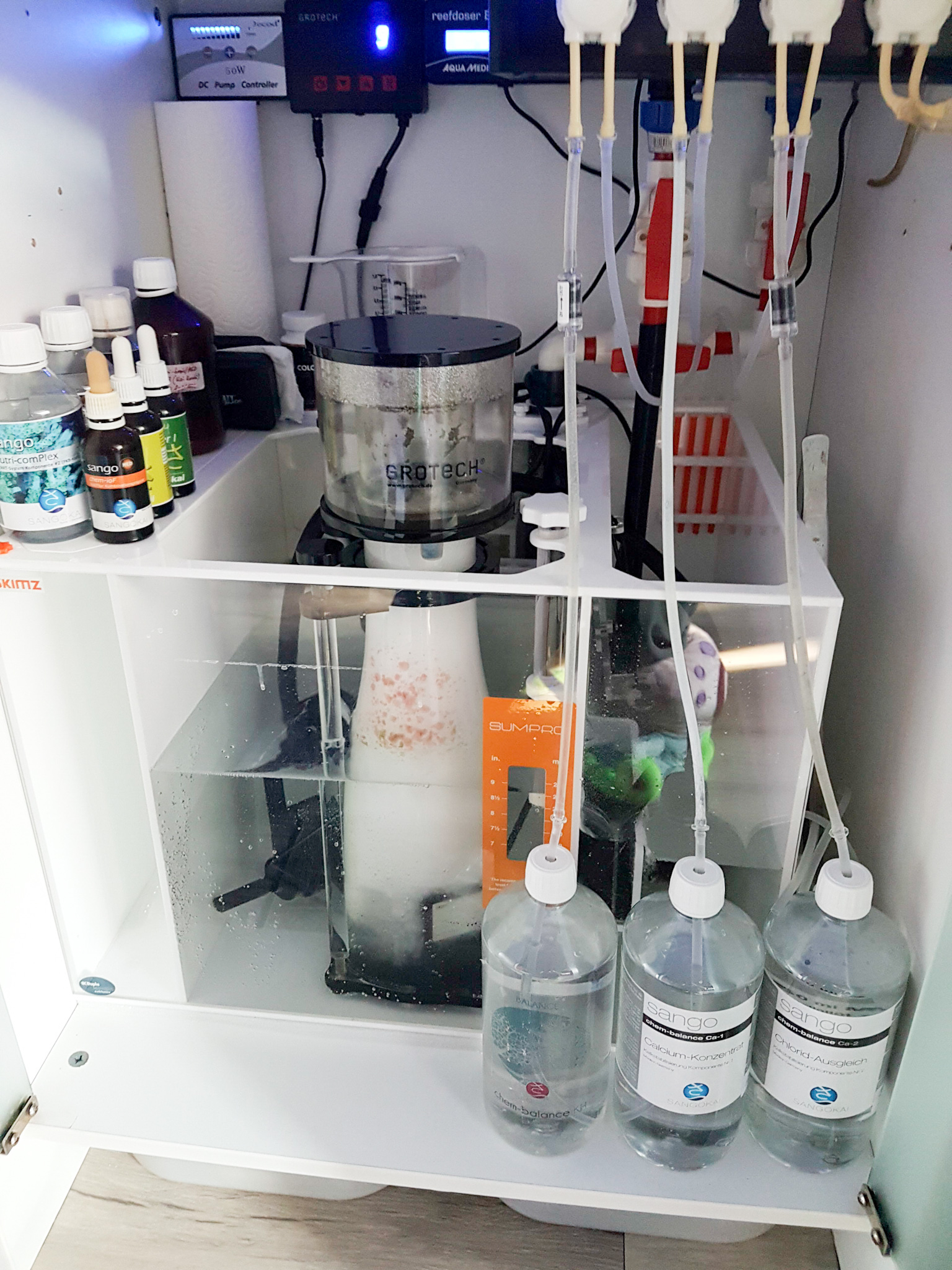 Meine Dosierpumpe von Aqua Medic wird durch den GHL Doser 2.1 in weiß ersetzt und die Jebao Rückförderpumpe weicht einer Speedy 3 50W von Royal Exklusiv.