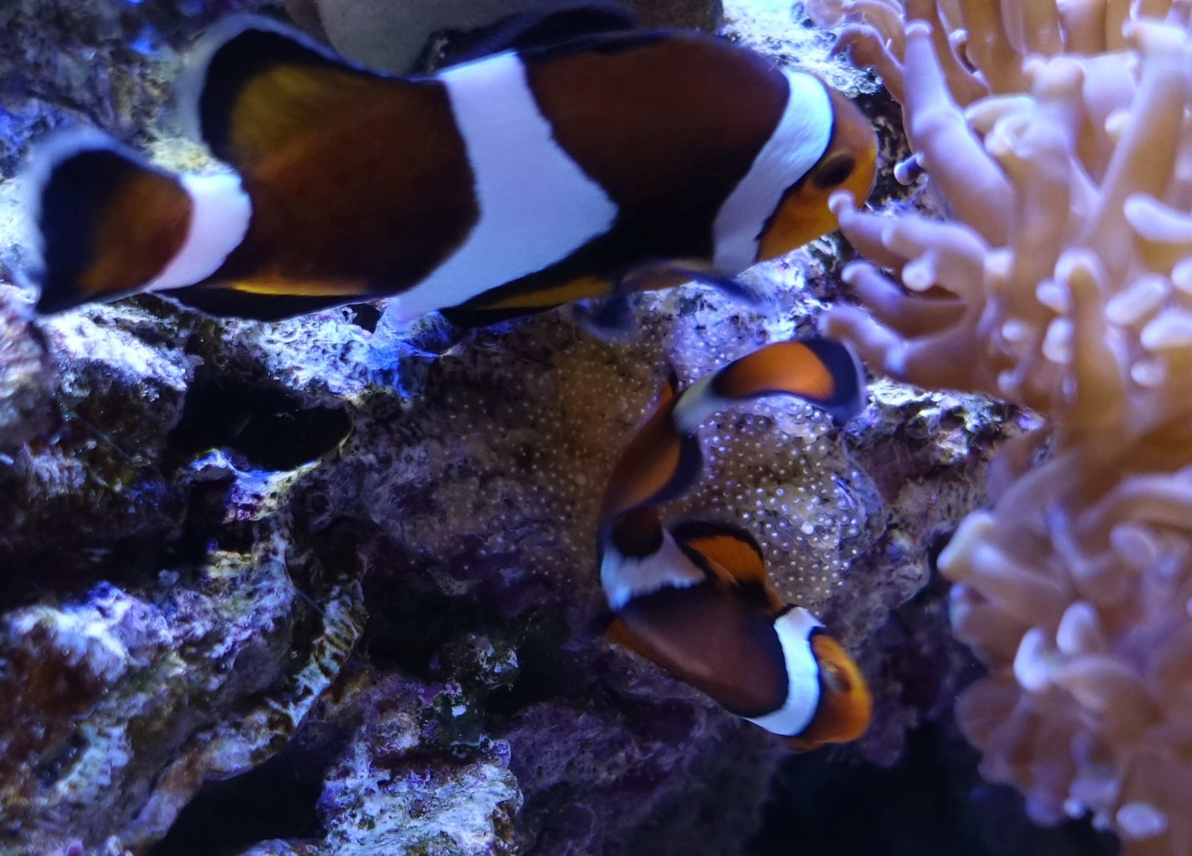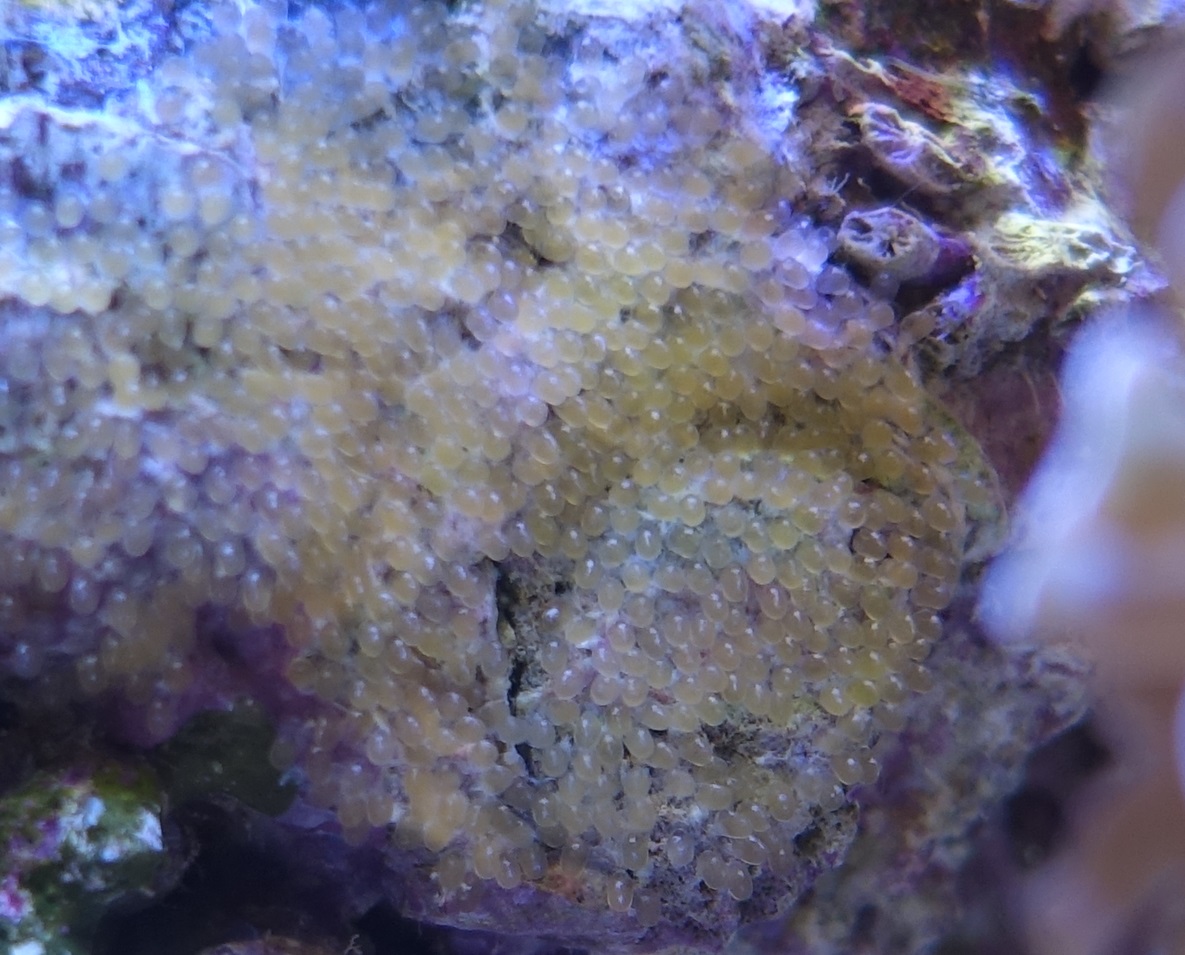 Gestern konnte ich das erste Mal beobachten, wie meine beiden Clownfische neben ihrer Euphyllia gelaicht haben. :)