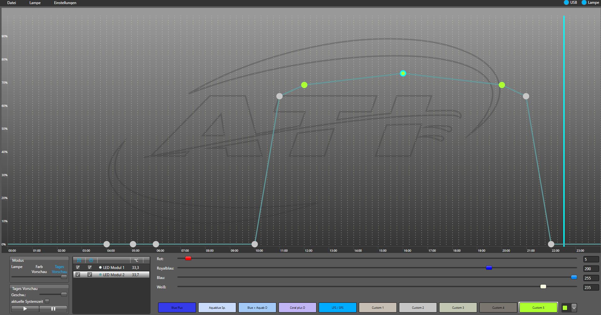 Da ich ein gemischtes Becken habe (SPS / LPS / Weichkorallen) bin ich auf der suche nach der richtigen Einstellung der Sirius X2 Lampe.