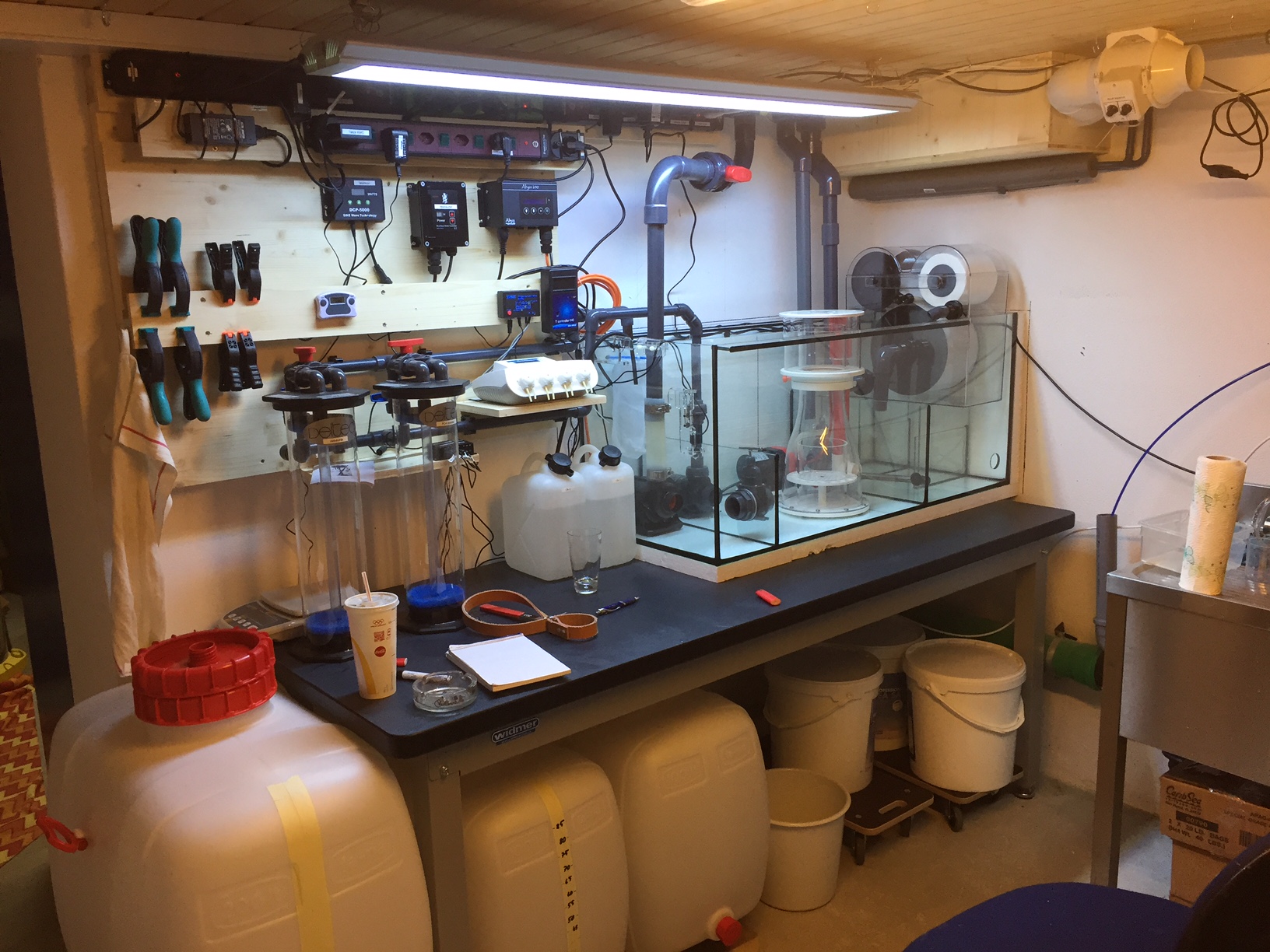Beim Bodengrund bin ich in meinem neuen Becken so worgangen, dass ich den einach vor den Aufbau geschmissen habe und ein bisschen mehr in Richtung der Höhlen für den Knallkrebs. Auf einer Grundfläche von 100x75 hab ich jetzt ca. 3-4 kg drin. Bisher ist das einwandfrei, anfangs ein paar Kieselalgen und das war es auch schon. Bisher die sauberste Variante. Und die Menge ist schon viel trotz der recht großen Grundfläche.