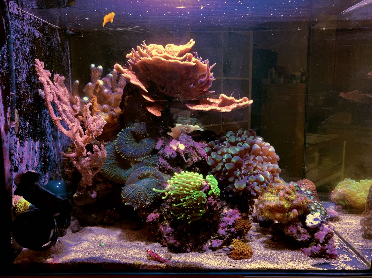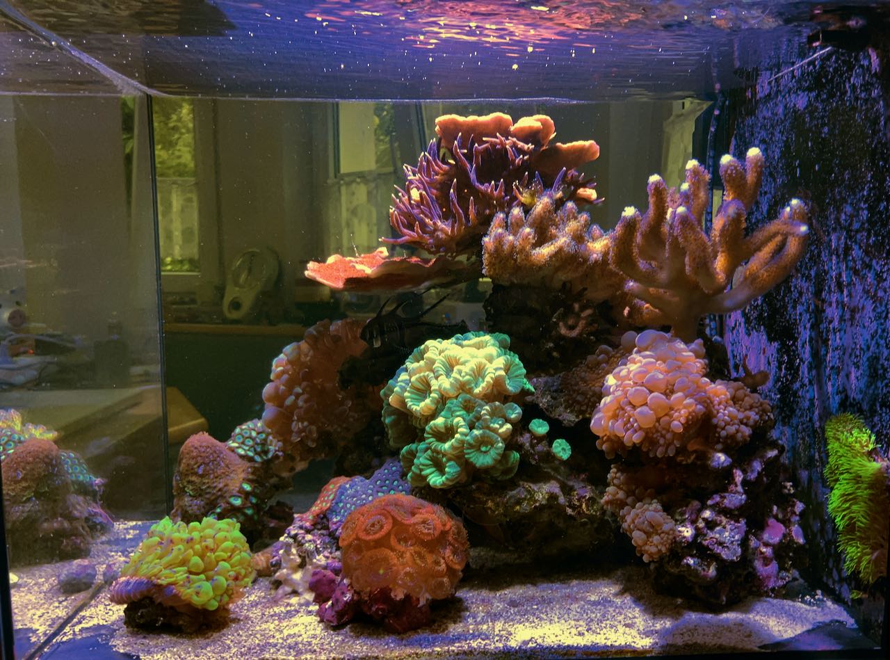 Allerdings scheint es dem Becken überhaupt nichts auszumachen, ich sehe keine mit diesem Rhythmus korrelierten Veränderungen an den Korallen oder dem Algenbewuchs der Scheiben…