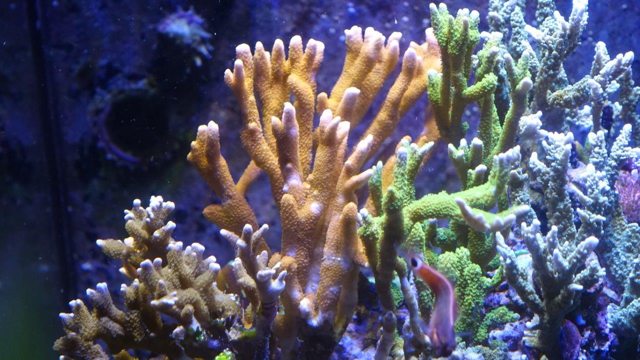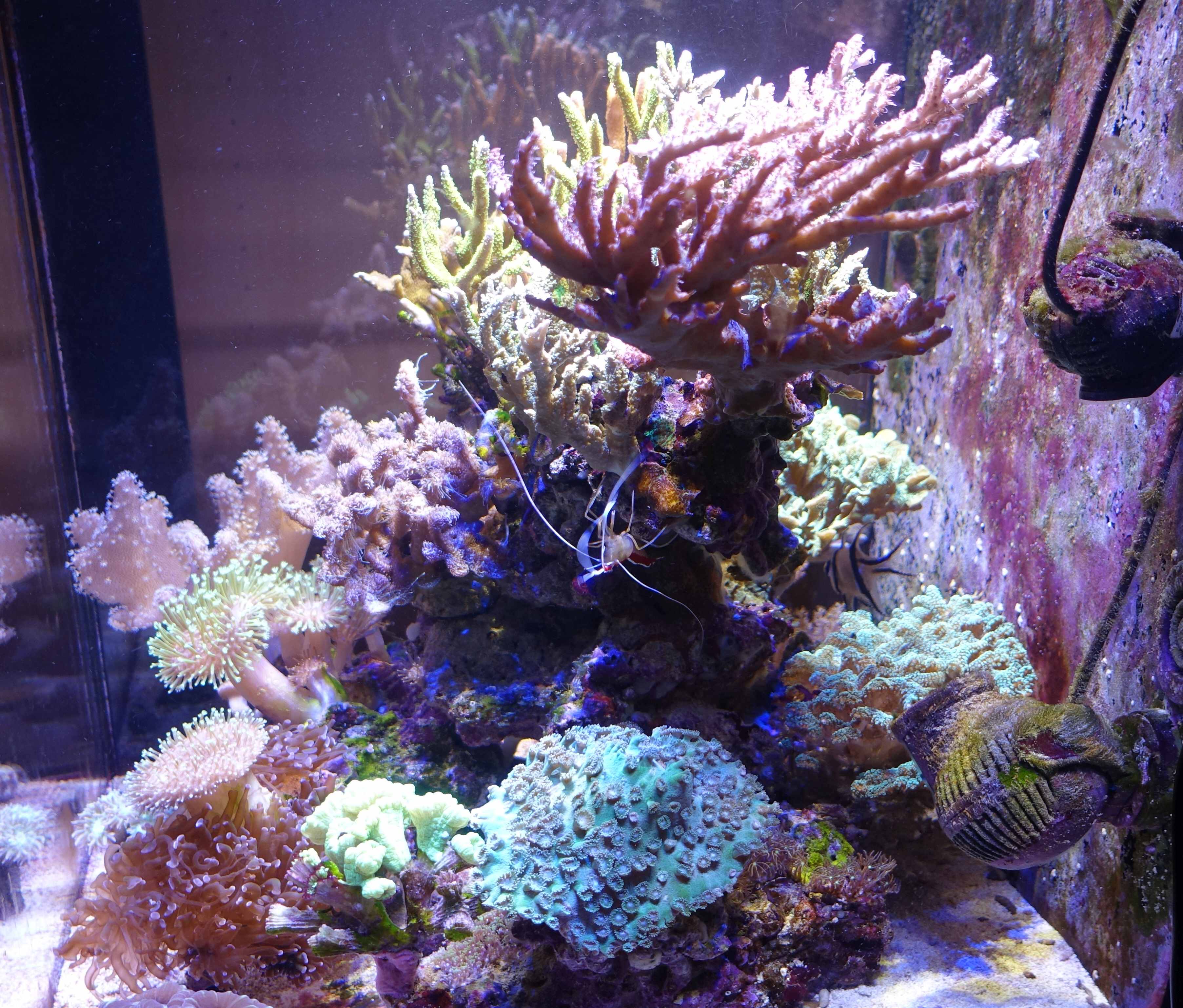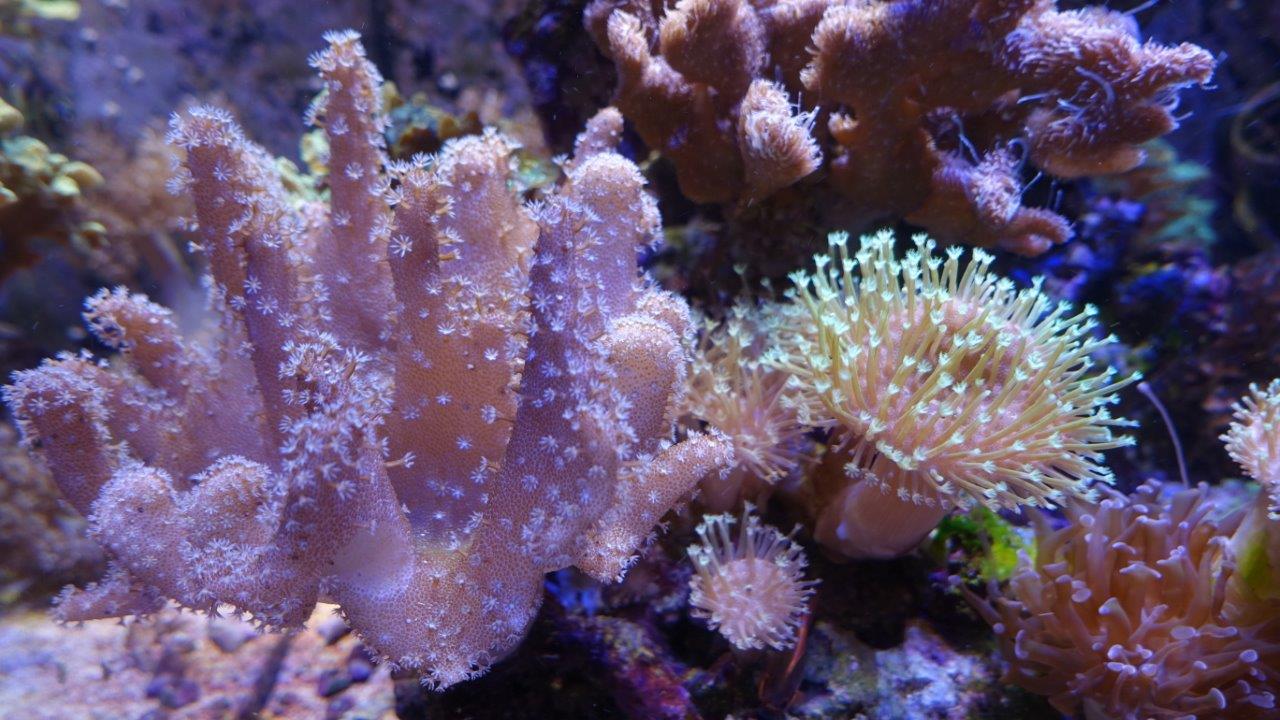 Ansonsten bin ich aber wirklich zufrieden, die Korallen sehen sehr gut aus und wachsen mal wieder ordentlich. Seit ich die kleine Bartkoralle ab und zu extra füttere, bekommt sie auch neue Polypen.