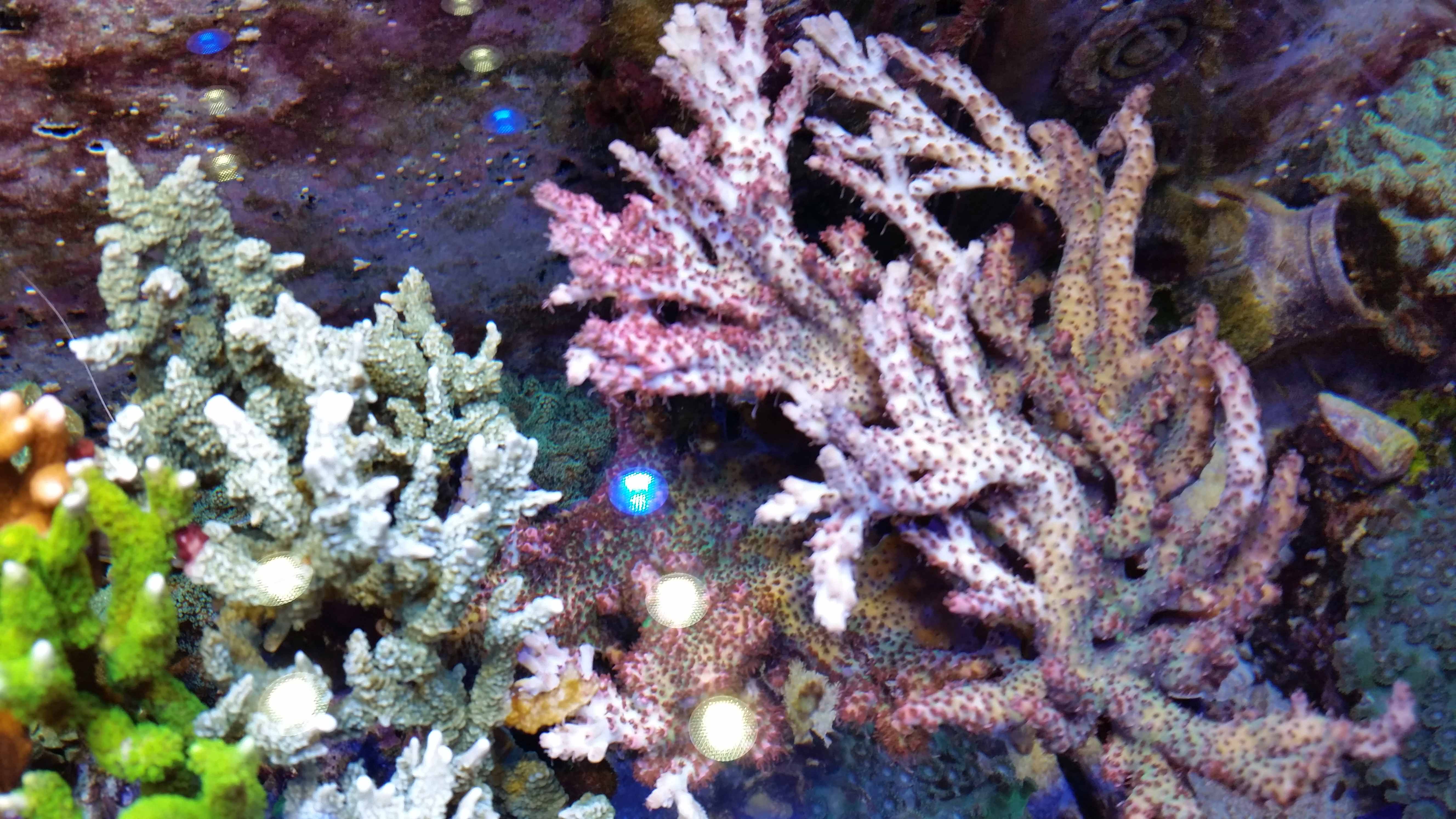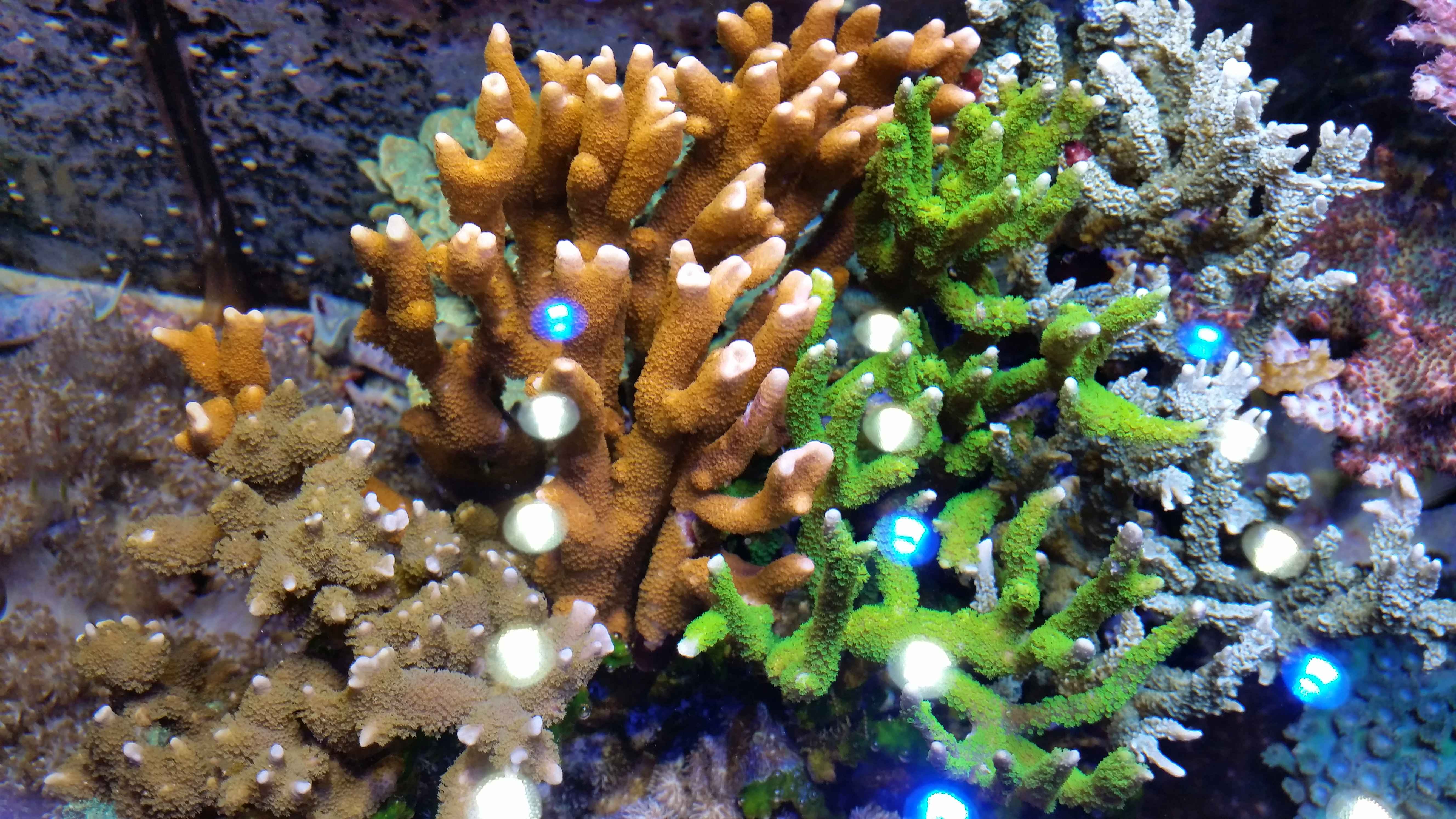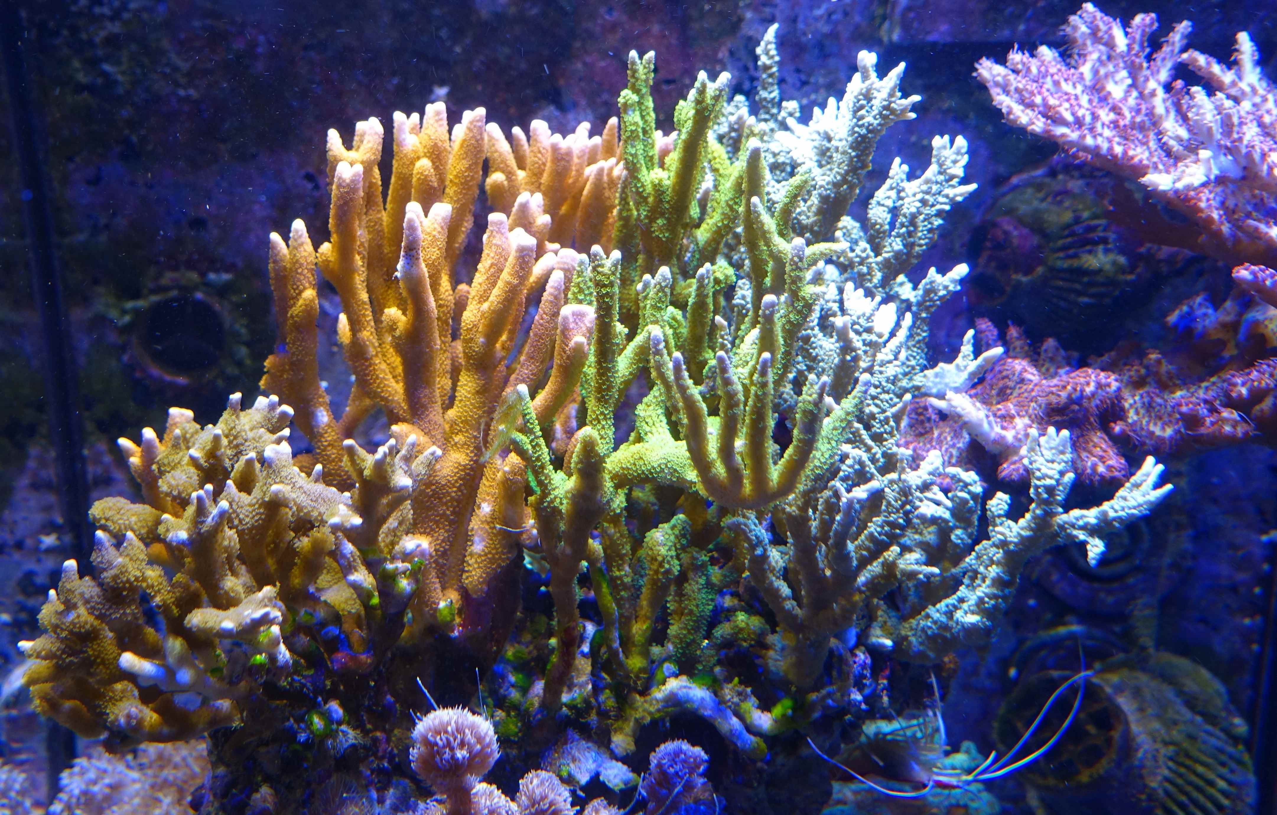 Ansonsten bin ich aber wirklich zufrieden, die Korallen sehen sehr gut aus und wachsen mal wieder ordentlich. Seit ich die kleine Bartkoralle ab und zu extra füttere, bekommt sie auch neue Polypen.