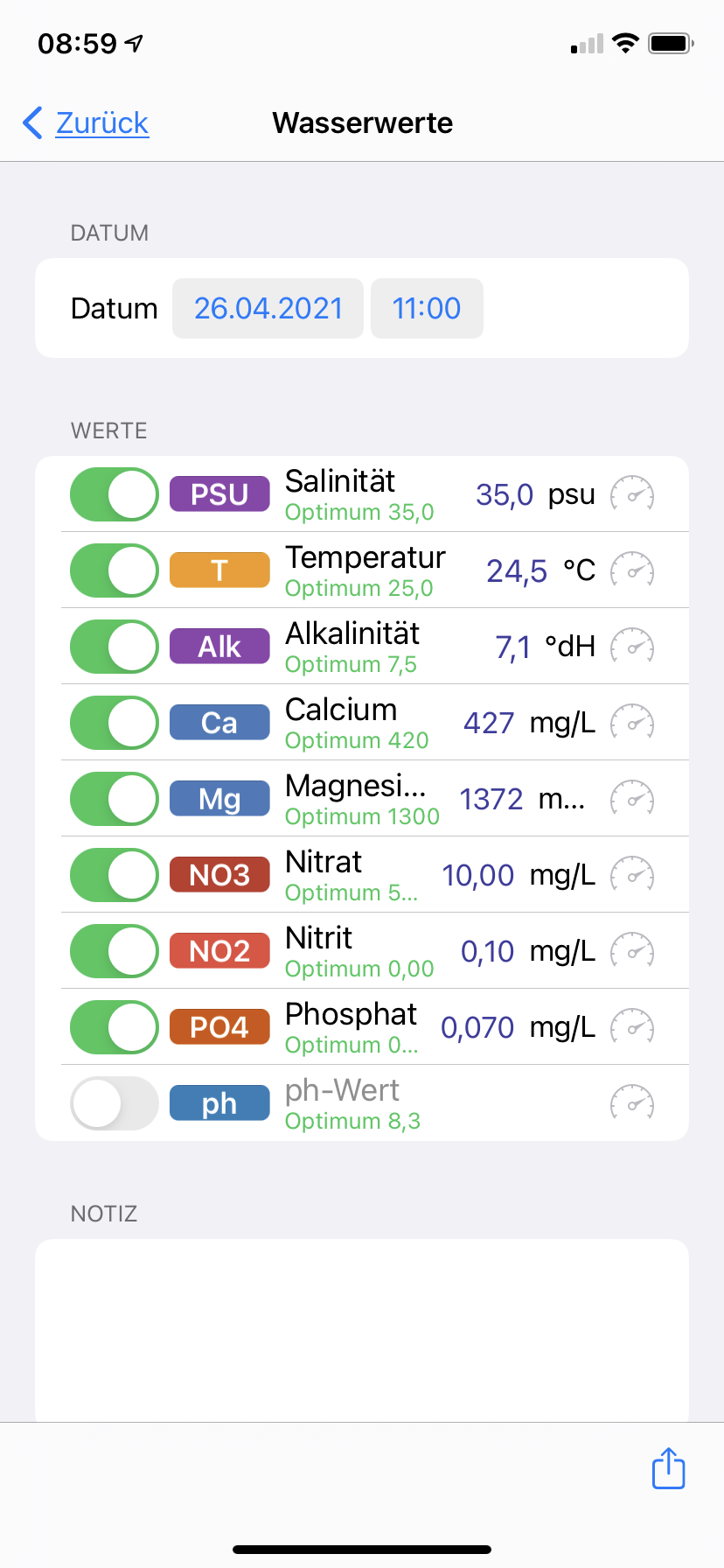 Und was misst du jetzt nach der Dosierung? Korallen ok? Andere Werte-Schwankungen gewesen, z.b. KH?