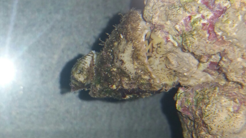 Mit dem ls eingeschleppte mithrax ist munter, die beiden Einsiedler sind auch wie immer. Dabei sind noch 2 turbos, n Dutzend mini-nassarius und 5 cerithium, wegen cyanos seit einer Woche dabei, sind alle munter.