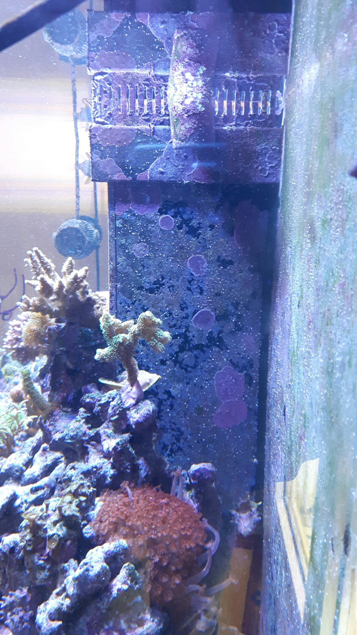 Im Zuge kleiner Reinigungsarbeiten habe ich vorhin mal 2 Winkel abgenommen und sauber gemacht. Als ich diese wieder montieren wollte, ist mir aufgefallen, dass ohne Winkel das frische Wasser toll mein rechtes Riff hinterspült. Also hab ichs ohne Winkel so gelassen.