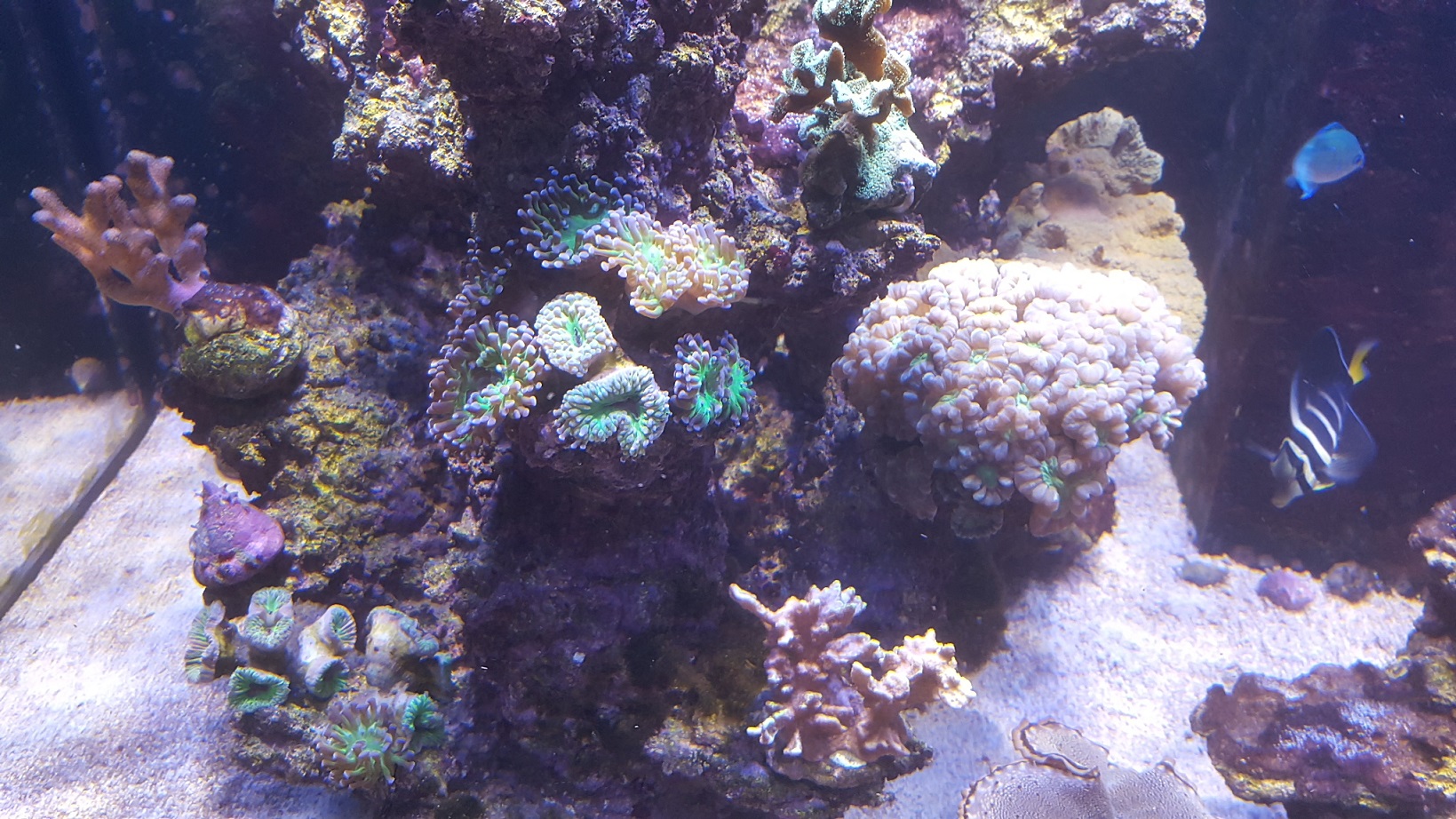 Ich wollte euch mal wieder ein paar Fotos des Aquariums zeigen nach meiner Katastrophe. Einige Korallen sehen gut aus, andere wie die gross Stylophora sehr schlecht. An was das genau liegt weiss ich auch nicht, habe nur seit dem grossen Wasserwechsel wieder sehr wenig Nitrat (0.5mg/l) und Phosphat (0.021mg/l).