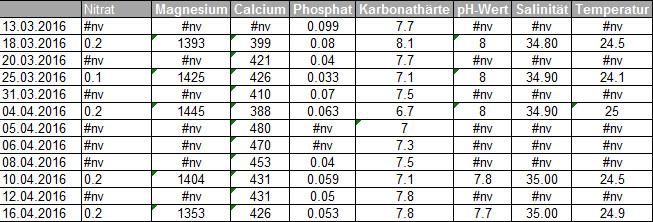 Der Werte sind wieder im Lot, aber trotzdem schade. - Weitere Beobachtung meines Phosphatwertes. Das Hin und her macht mich noch wahnsinnig. Festhalten lässt sich, dass ich mittlerweile alle 3 Wochen mein Phosphatadsorber ergänze oder wieder neu befüll mit etwa 300ml (1:1 gemischt aus ROWA Phos ExPhos & Fauna Marin Ultra Phos 0,04).