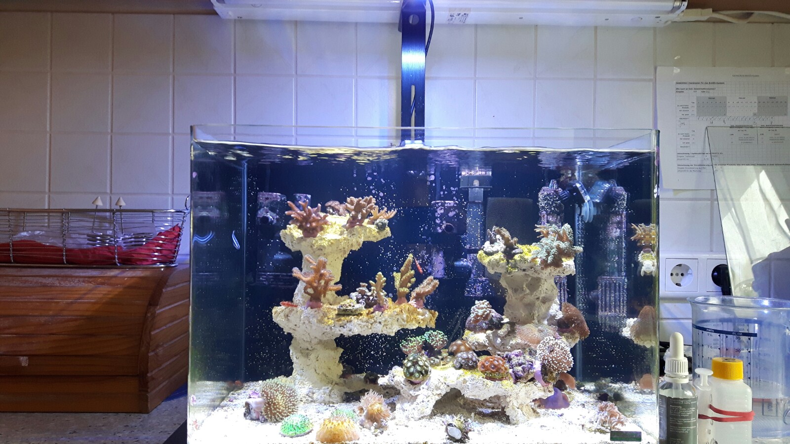 Läuft alles aktuell ohne erneute Probleme. Aktuell etablieren sich Algen auf der Keramik. Somit kommt des Becken langsam in Fahrt.