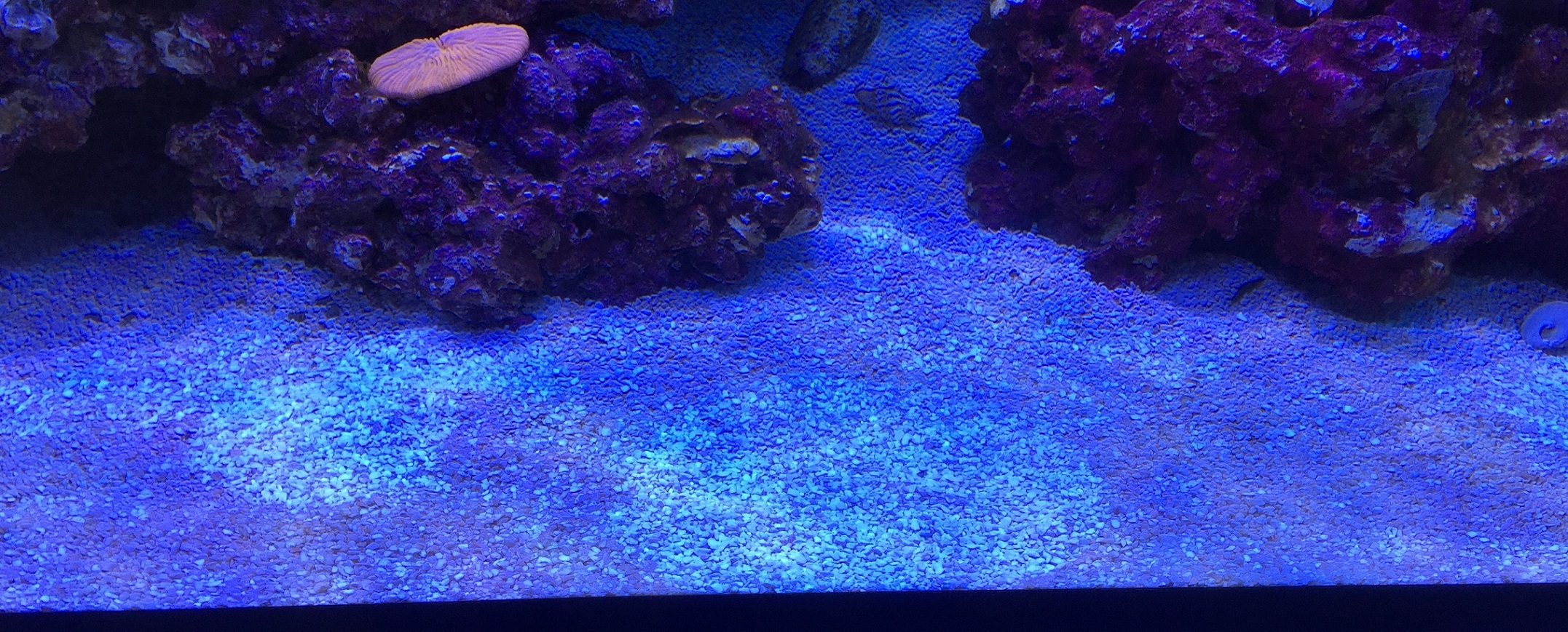 An diesen Stellen sind die Algen komplett verschwunden und der Bodengrund strahlt schneeweiss.