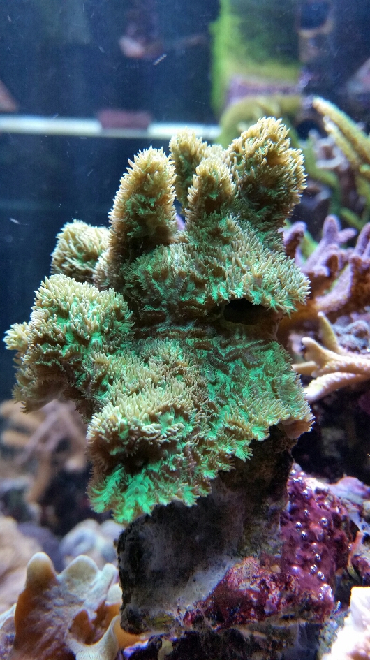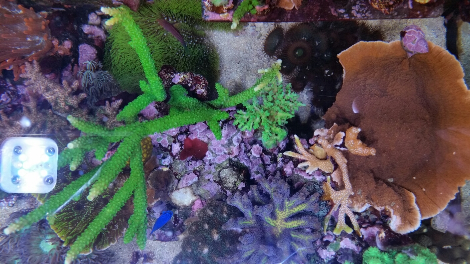 Bis auf ein paar Cyanos habe ich eigentlich keine Probleme. Mein Ca Wert schwank im Moment ein wenig, das kommt aber noch von der Entnahme meiner Orgelkoralle und 4 ihrer Ableger. Darauf hin stieg er unbemerkt an (war mein Fehler) und habe seitdem etwa schwierigkeiten ihn wieder ins Gleichgewicht zubringen. Aber mit der Zeit wird das wieder.