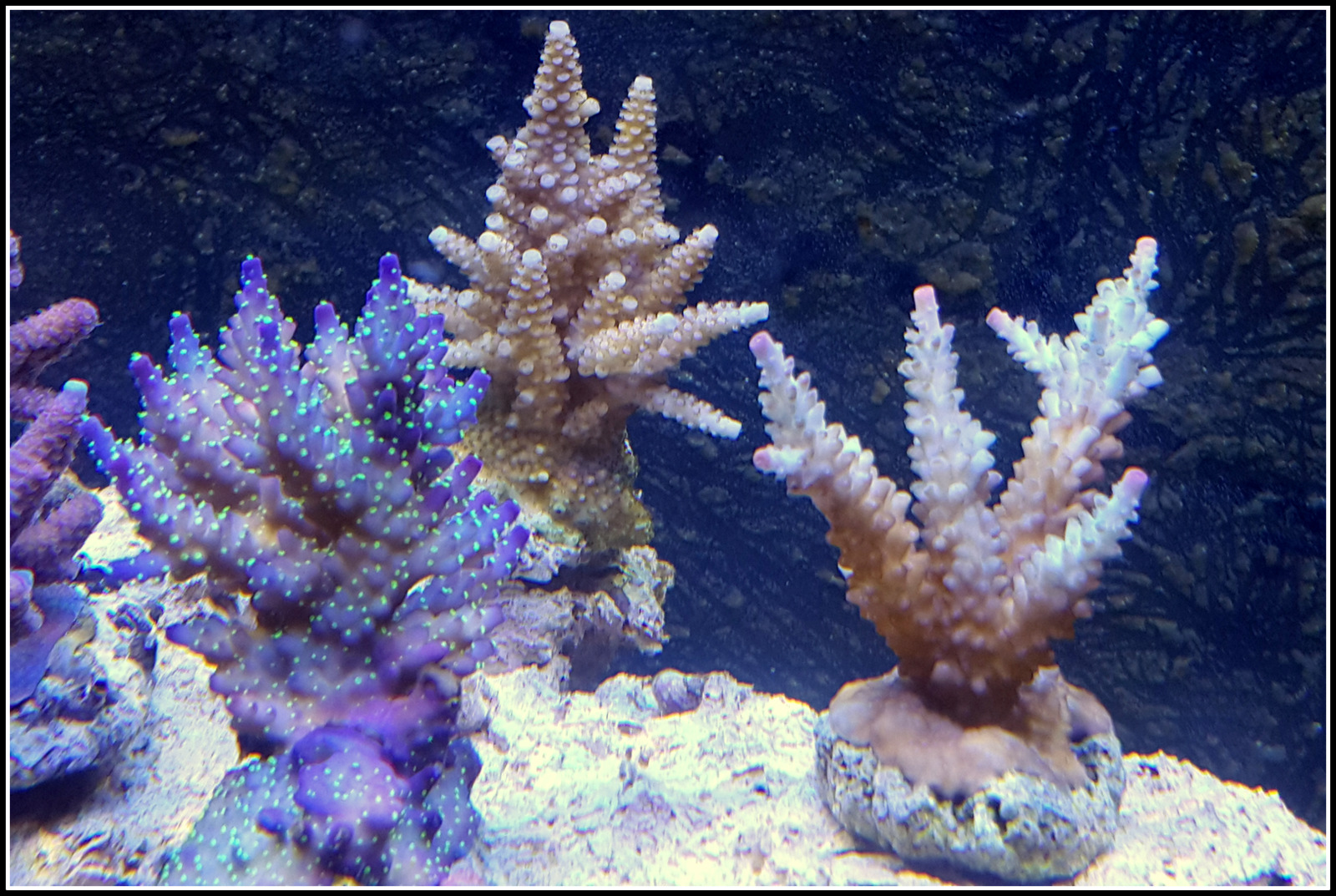 Für mich ist die Tricolor auf dem 2ten Bild am (ver)Hungern. Das ist für mich keine "natürliche Färbung". Auch wenn ich weiss, dass es Aquarien gibt, in welchen die Koralle so aussieht. Mir persönlich ist das zu blass...