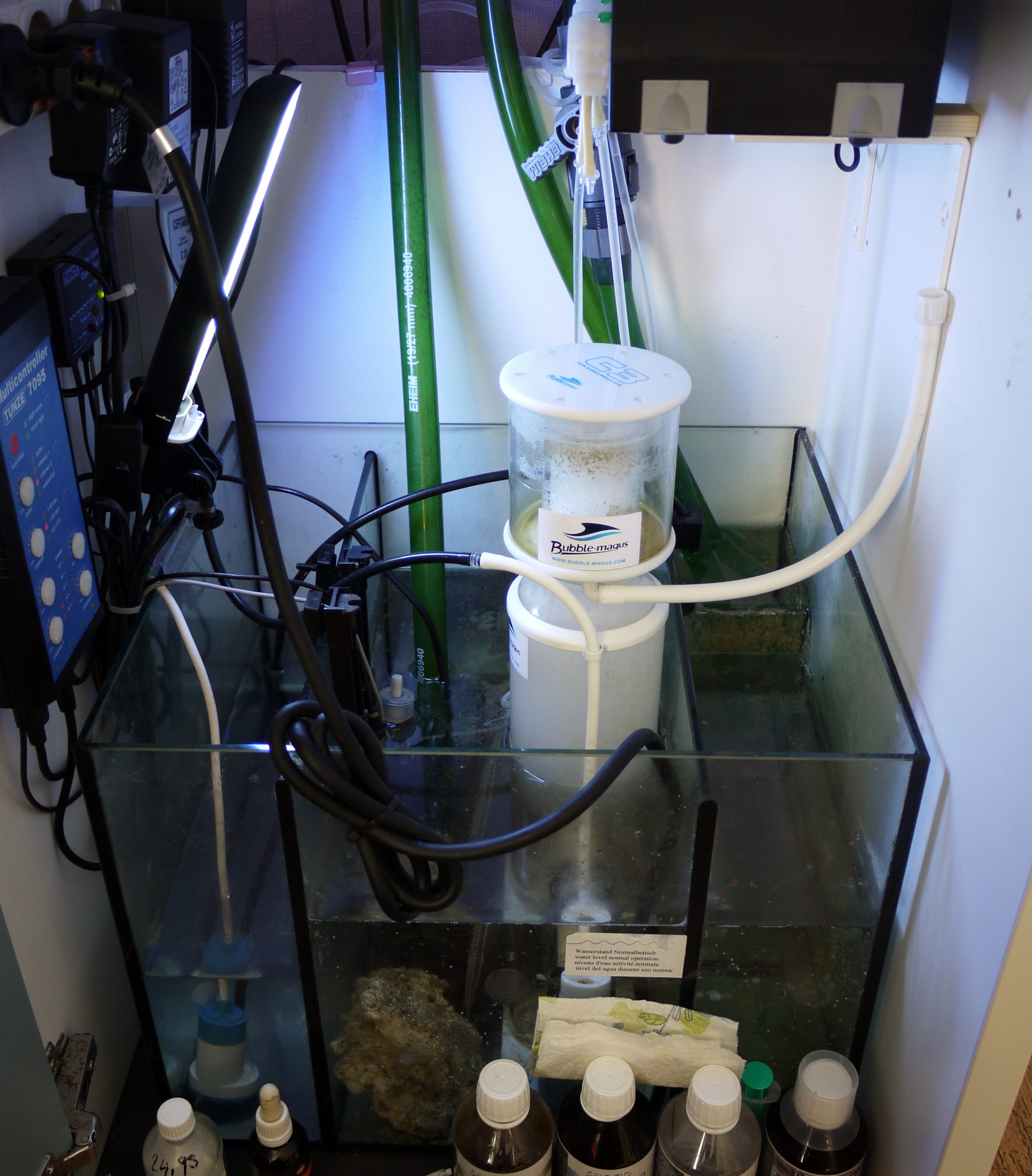 der Stein im Technikbecken ist für die Krabbe die da drin wohnt. Die hatte meine Seenadeln angenagt und musste aus dem Hauptbecken.