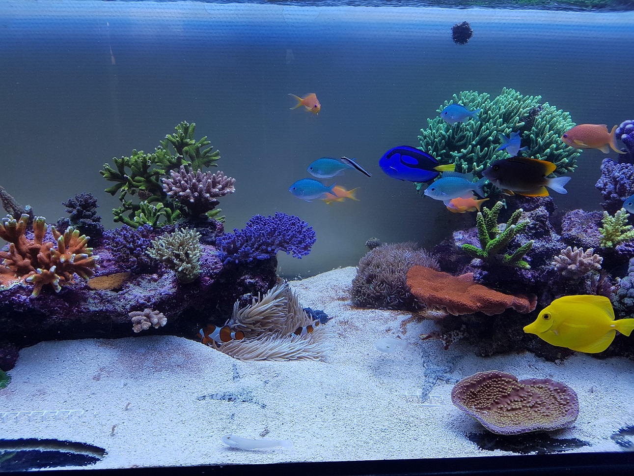 Dass Futter zum "liegen" kommt, kann ich mit gutem Gewissen verneinen. Gefüttert wird ca 10 mal pro Tag, kleine Mengen, jedoch wird dies innerhalb von ca 1,5 Minuten restlos gefressen. Die LPS kriegen weder vom Frostfutter, noch vom Flockenfutter etwas ab, deshalb die LPS Pearls (die Wunderkoralle dankt es, seit ich damit begonnen habe). Ich überlege eher, die Futtermenge zu erhöhen, da ich das Gefühl habe, dass noch weit mehr gefressen würde.