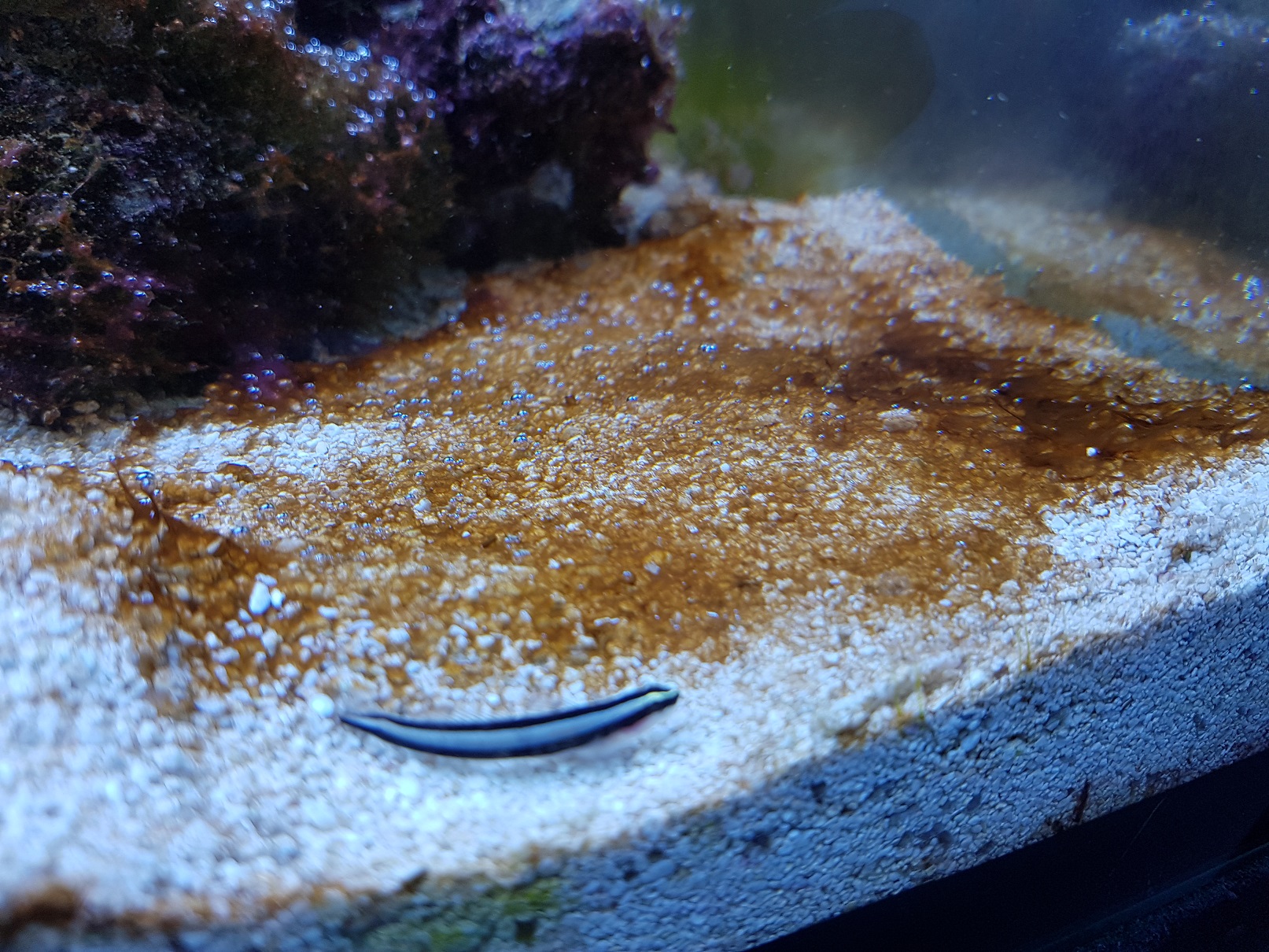 Nachdem die Dinoplage Anfang Juni ausgebrochen ist (heftige Phosphat-Turbulenzen, Biologie-Instabilität), habe ich mich am 24. August entschlossen, die "Stress"-Röhren Actinic und Purple auzutauschen mit ebenfalls Aquablue special und Blue plus.