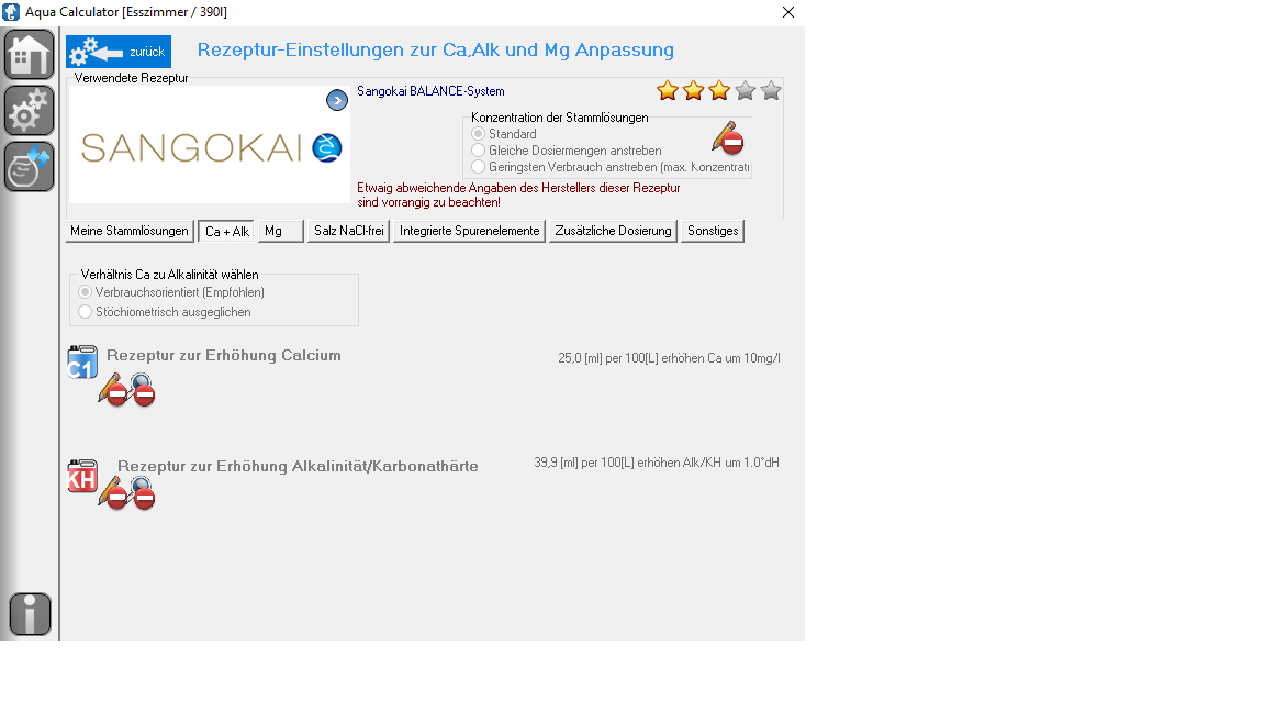 Nach den Empfehlungen in der Produktbeschreibung hatte ich mir den Aqua-Calculator geholt und auf Premium registriert.