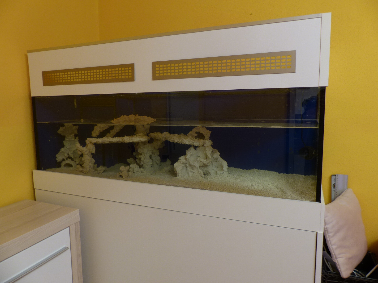 Vom Aufbau möchte ich ein Sandzohnen Riff gestallten dazu ist in meinem 300er bereits eine 30cm hohe Riffsäule vorhanden eine kleiner 20er Säule Wässert bereits.