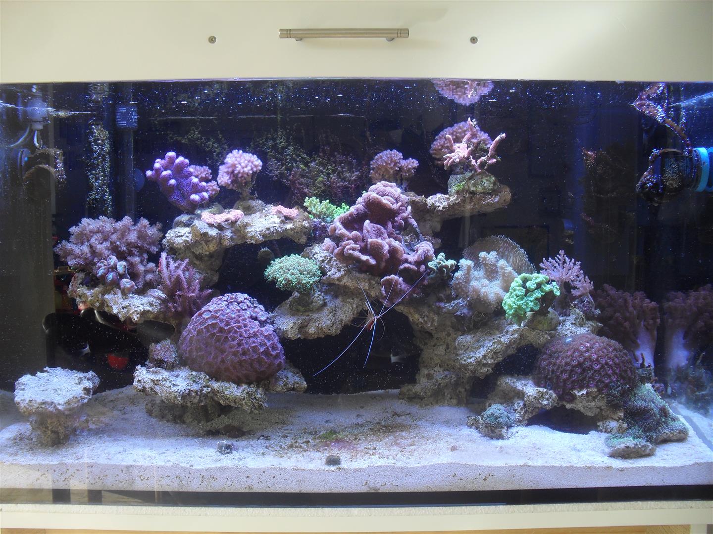 Ich habe gestern auch gleich die Anordnung der Strömungspumpen etwas geändert, da ich das Gefühl hatte, dass die Strömung fast nur um das Riff herum geführt hat, bei den Korallen aber nicht viel angekommen ist. Zufrieden bin ich allerdings immer noch nicht ganz... Das Thema Strömung scheint schwieriger zu sein, als ich gedacht habe.